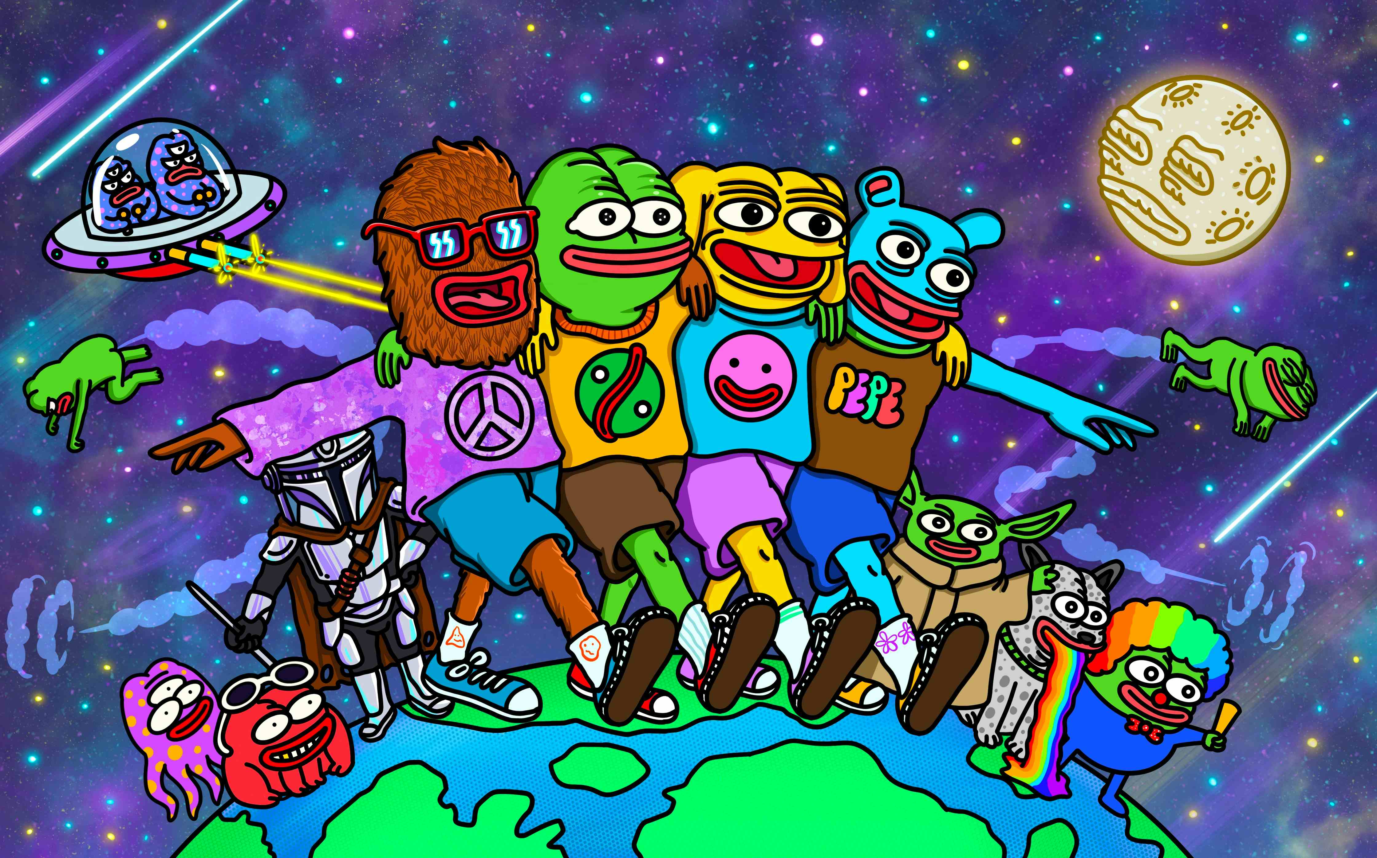 "Good friends are like stars, you don't always see them, but you know they are there." Pepe is not alone in this world he always has his beloved friends beside him❤️⭐🐸 Size: 4480 x 2794 px 300dpi