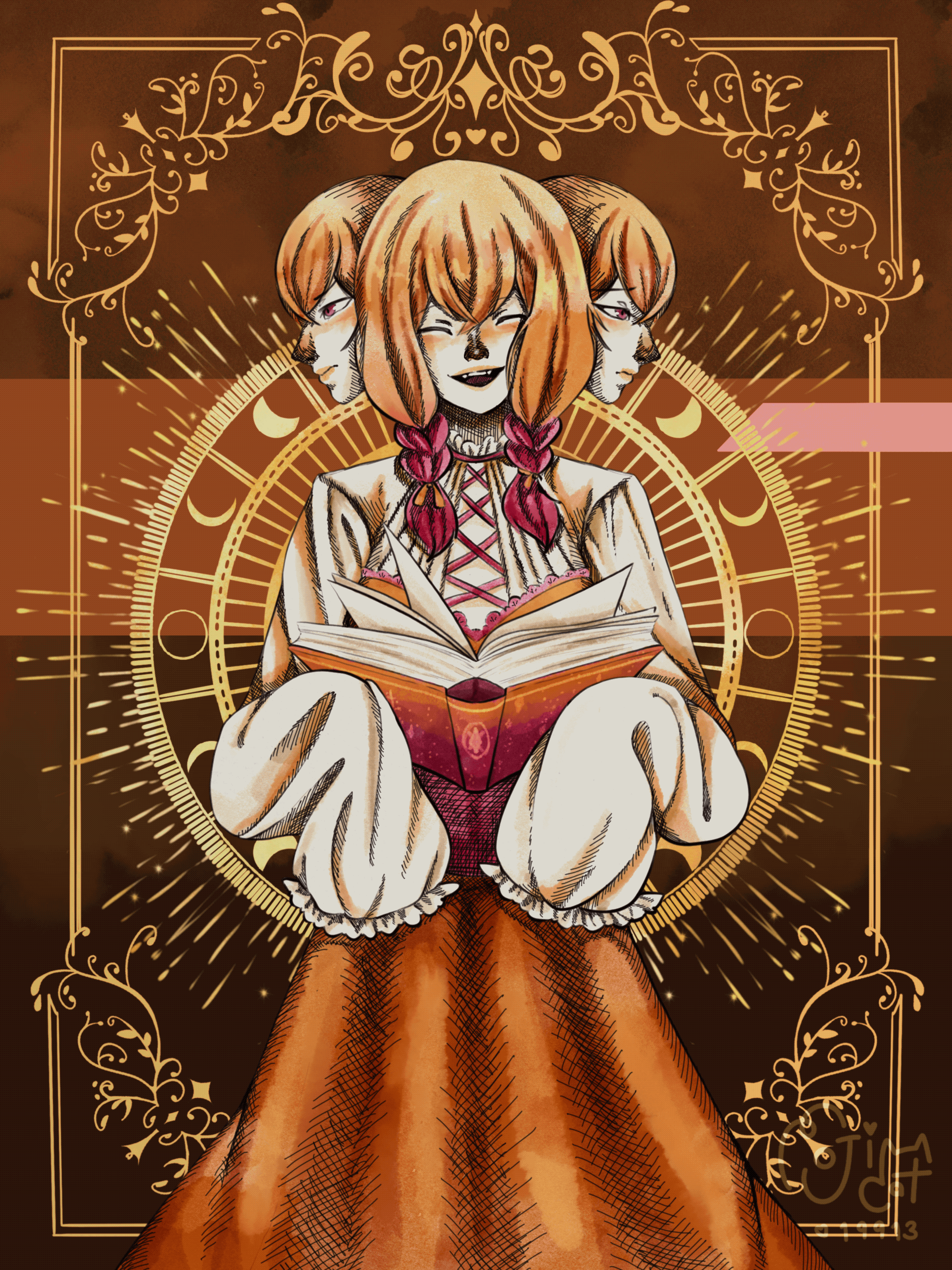 I woke up in a library But this isn’t just a normal library I used to know, a three-headed librarian looks straight at me. One on the right, growling angrily, and one on the left, weeping sadly. Her middle head smiled at me and kindly asked me to return what I have borrowed but I’m not the type of person who forgets to return something, I always return them on time. She asked again, the book in her hands started to flip. Page by page, I felt like the growling and weeping were louder and louder and her smile became weirder and weirder. Before I could see anything more, the book slammed shut and the library collapsed