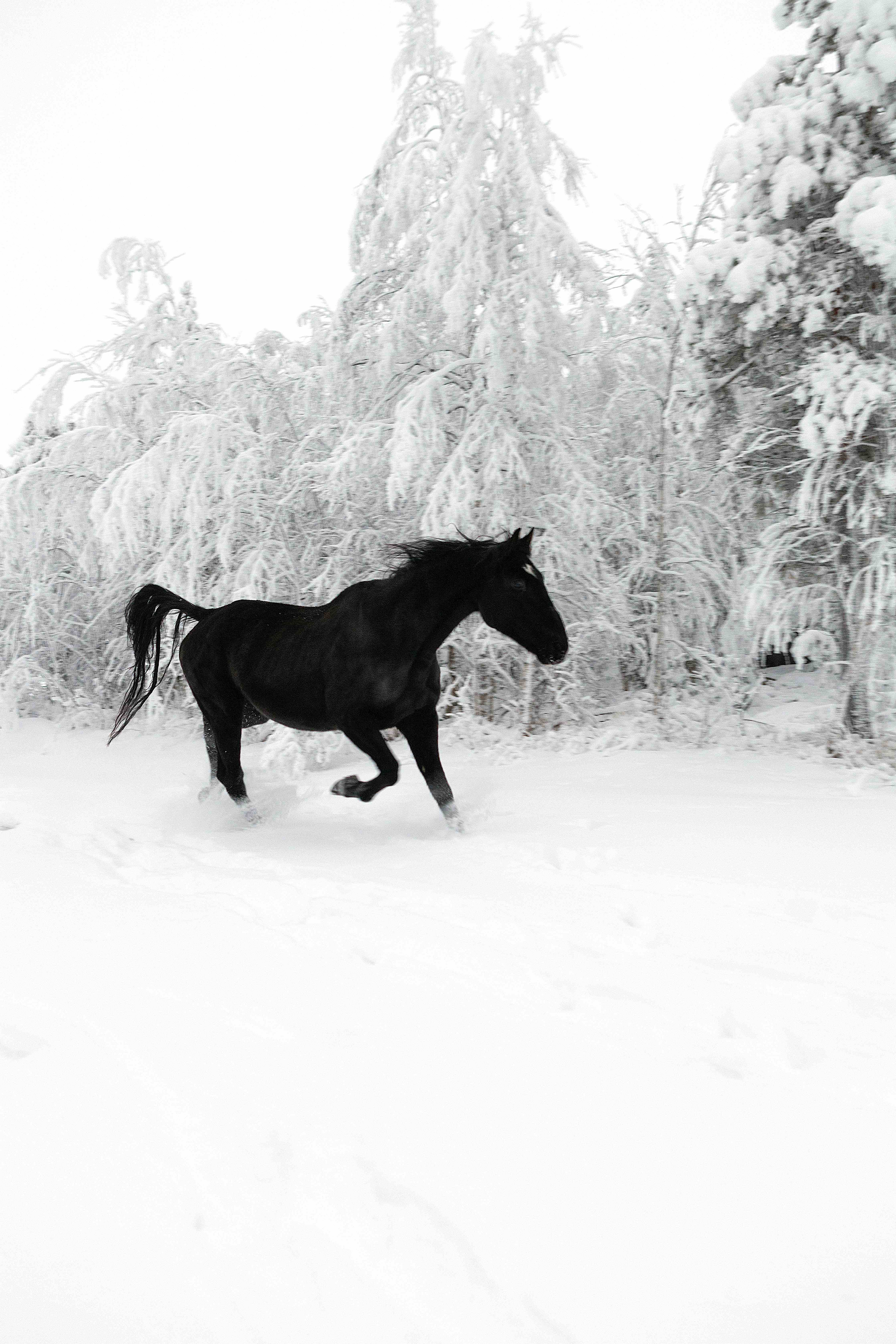 Lapland, 2014 I Photographed the black horse in the Finland Arctic Circle. One morning spent with a wild unpredictable animal, a beautiful black horse running from me and my camera. It just wanted to run fast, back to his home.
