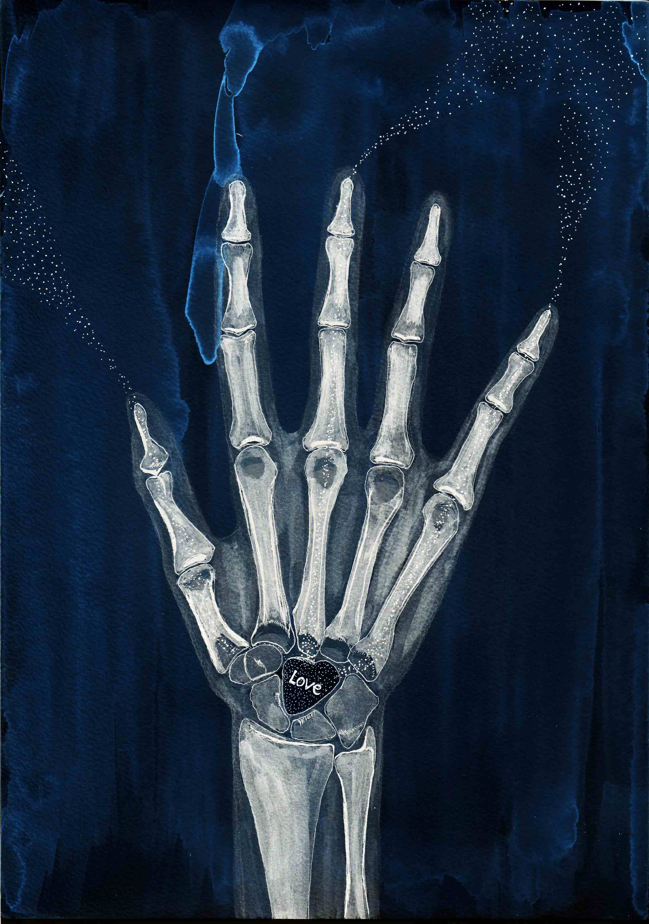 Love hand like if it was under X ray. Unique digital work, handmade with pigment liner and charcoal. 2460 x 3504 pixel 1/1 art