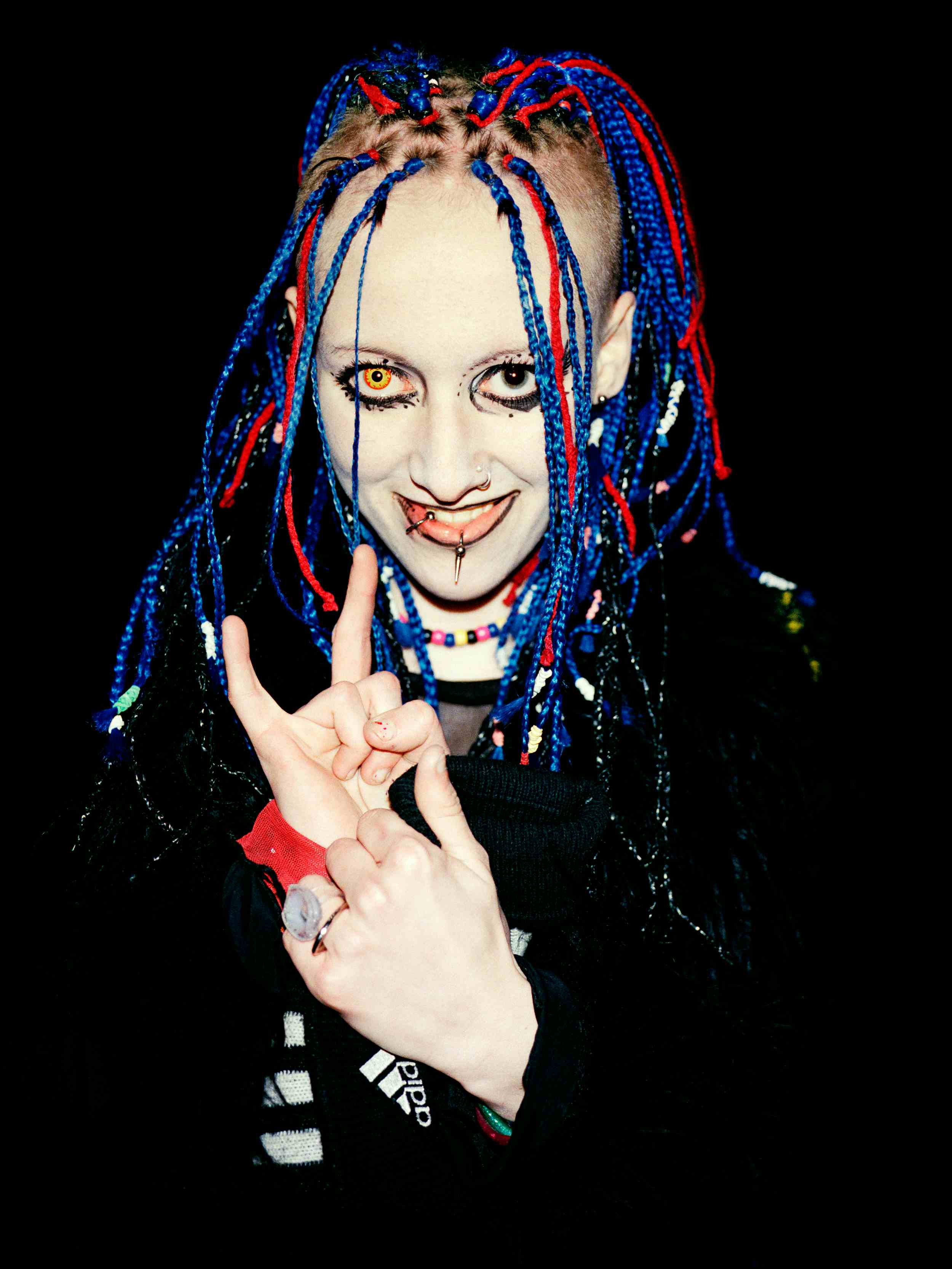 Marilyn Manson fan poses for this portrait, as Marilyn Manson performs at the height of his fame and infamy for the first time at The Docklands Arena in London 2001. MILLENNIUM DAWN COLLECTION: This collection documents the first few years of the 3rd Millennium (2000-2004), when social media and camera phones were yet to exist and the internet was in its infancy. I got my break in the late 90’s with style bible - THE FACE magazine photographing artists and youth subcultures. The next few years found me at festivals, gigs, clubs, beaches and in parking lots. This collection reflects the energy, attitude and spirit of this time. The images in this collection were shot on my Mamiya 7ii, Fujifilm GA645Zi and Contax T2 film cameras.