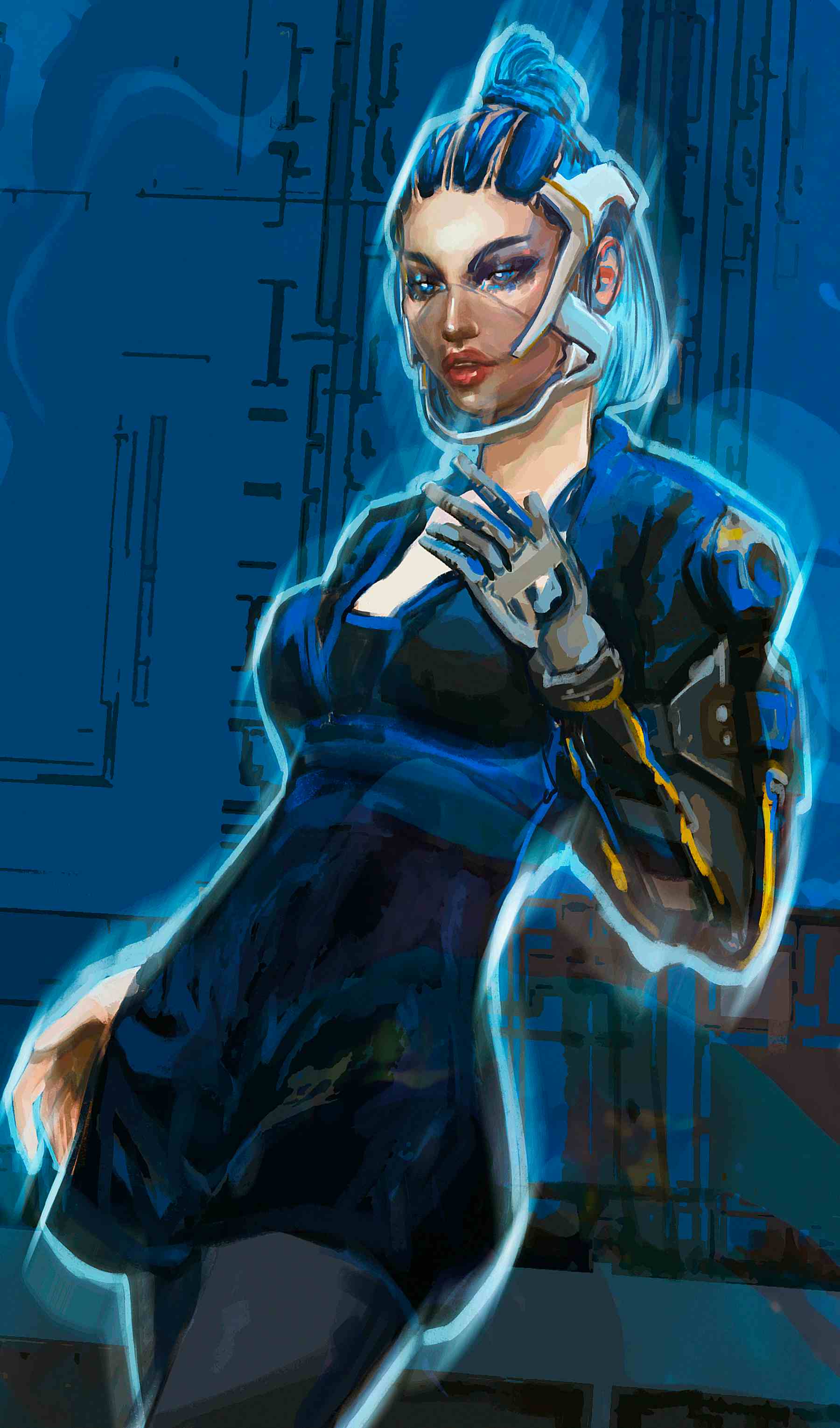 Created through inspiration through the rhythm of the game. Cyber Blue has been completely redesigned. Despite its popularity in the first collection, I wanted to convey my love for rhythm games in it, since I grew up on them. She became an outlet for me, and I wanted to create something different from what she was. It is also equipped with prostheses and is fully equipped. Cyber Blue is inspired by characters from the old Cytus game. Perhaps you won't find anything similar, but believe me, looking at her I see my childhood and my burning eyes.