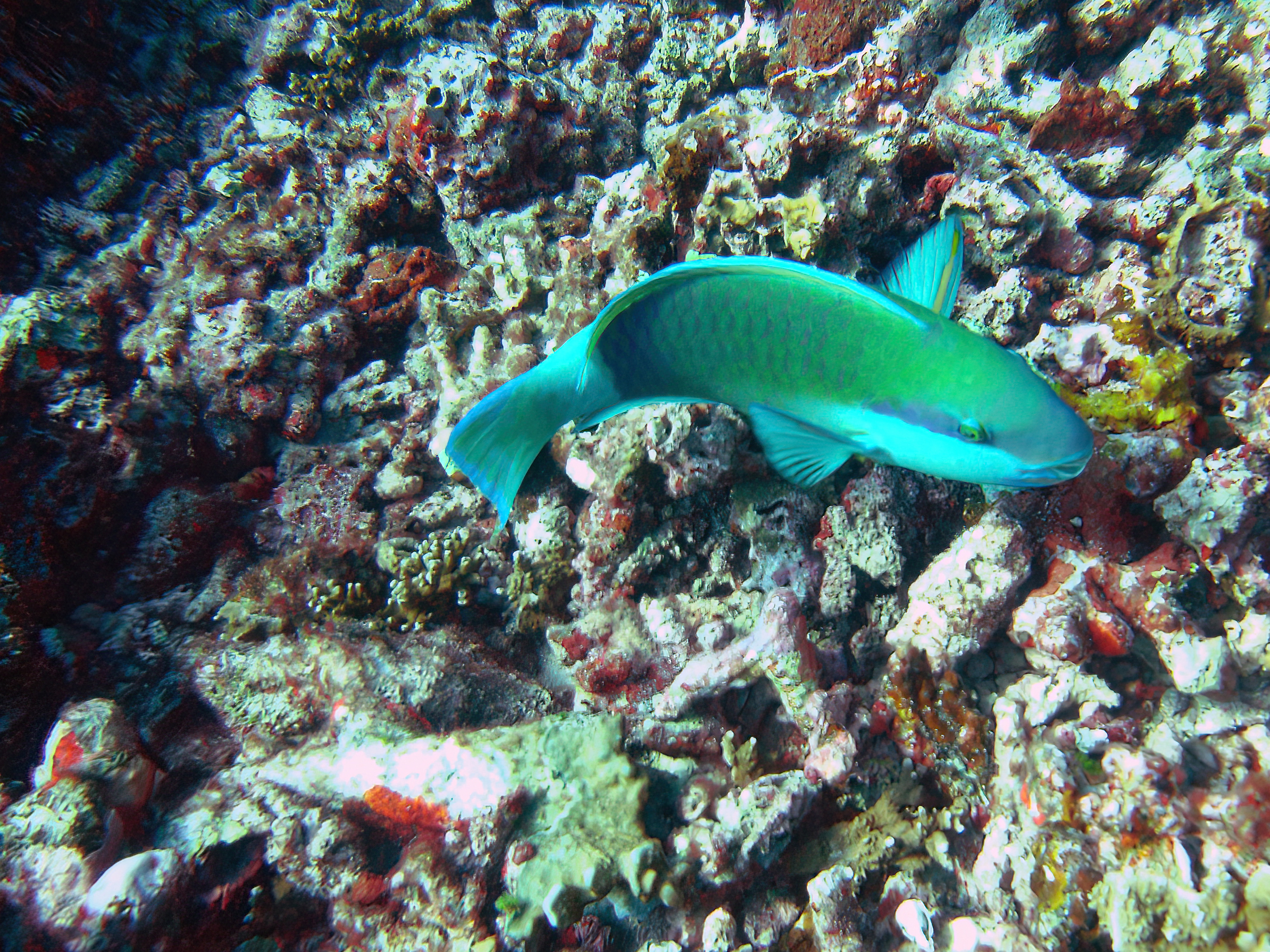 Shot while diving in the Similan Islands, Thailand. This Parrotfish allowed me to get close enough to grab a great photo. I've found in the past that they can be very shy, and challenging to get close enough for a shot that will show off their true beauty. Additionally, because they are quite iridescent, the colours often don't photograph easily. This one against the backdrop of the coral, with contrasting colours, really pops! As with all of my underwater photography, a portion of the sale will be donated to a charity that helps to rebuild and restore the coral reefs. 2388 × 1791