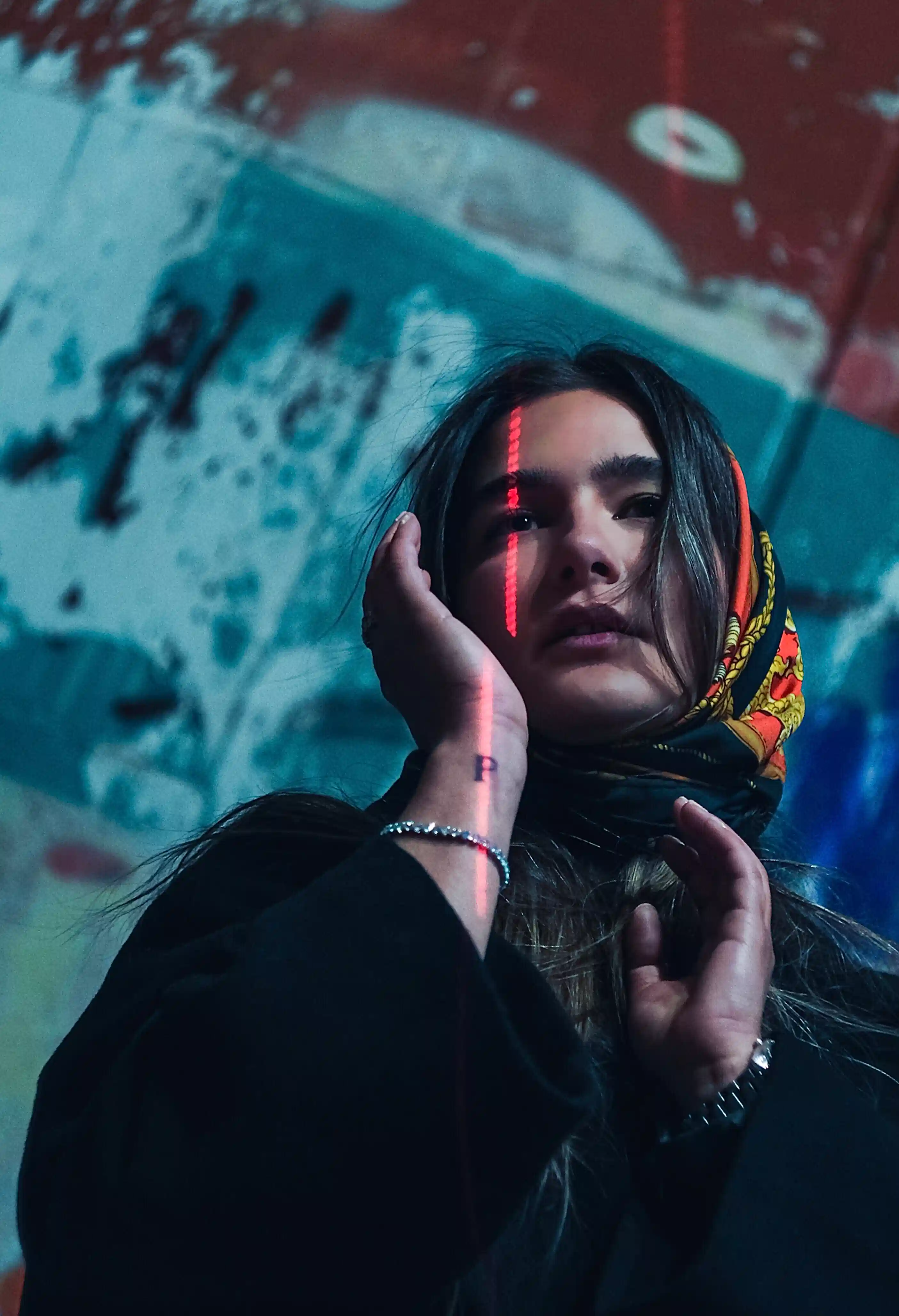@46thexposure presents Broken Face #26 From #46 Unique Pieces of Digital Art! Broken Face Laser Feels features a unique 2810x4112px Prism Red Laser and East European Headscarf. We are @46thexposure! Our Mission is to create The First Metaverse Virtual Exhibition! The first Broken Face NFT Collection will have 46 Unique NFT pieces and they will serve as Passes for Future Events and Exhibitions!