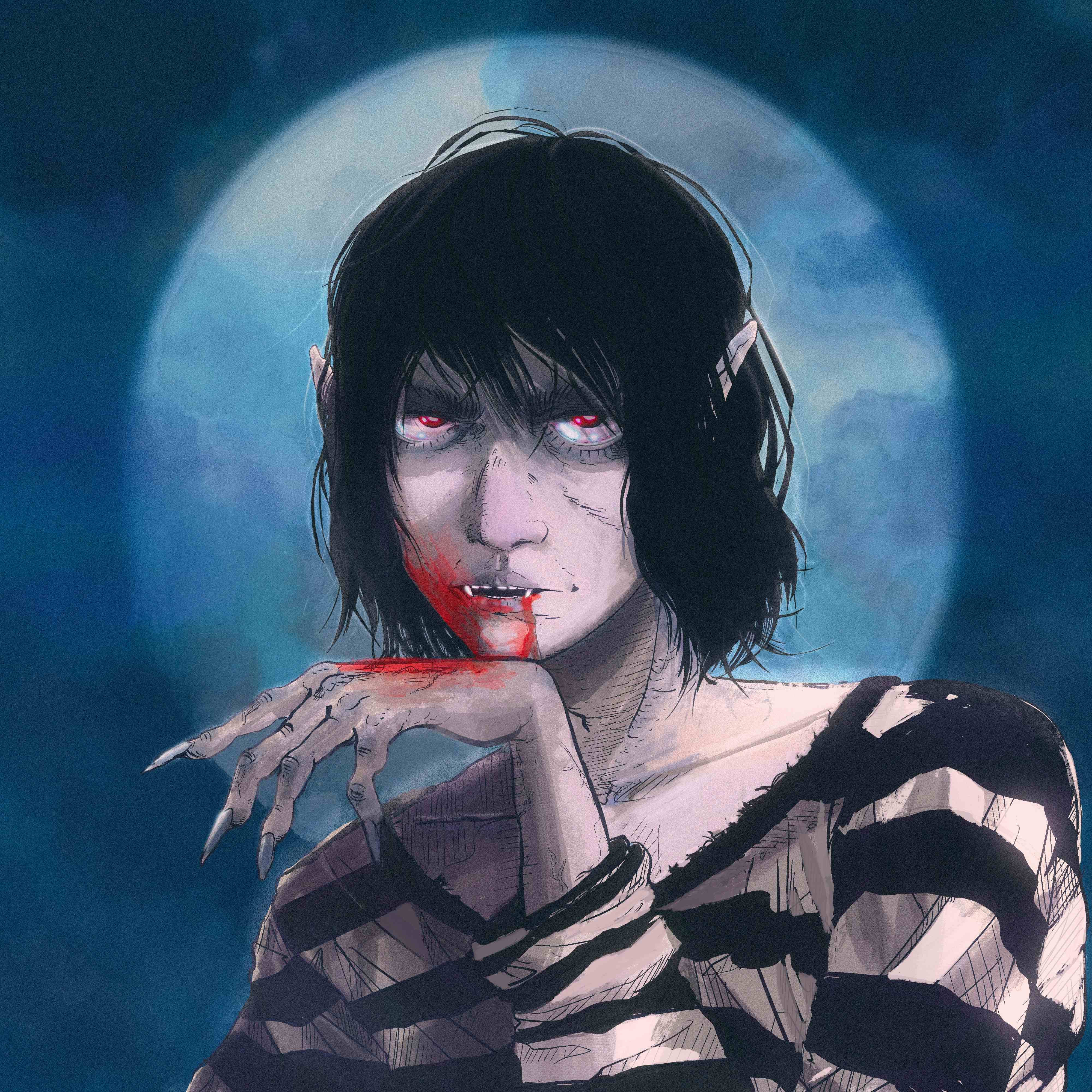The utter darkness consumes your vision for a few moments, but then a foggy haze and floating dim lights begin to lead you through the void. Maybe your eyes have just adjusted to the pitch black, or a passing cloud let some moonlight slip through, but suddenly a place emerges from the shadows. A city street full of lights and people. The sudden chaos here is hard to grasp. Do you remember how you got here? Are you here of your own choice or were you lured into the night by an unseen force? This place is totally unfamiliar, like you've just wound up in some strange foreign city. The moon is the same, but under it is just an illusion of normal life, occupied by menacing and otherworldly figures. Your gut tells you this uncanny place is detached from everything you know. Is it the afterlife? You're still breathing, but your lungs don't want to breathe the air. Your senses begin to return, you just remembered why you came here, and why you come here every night. 4000 x 4000 BLAKKMASS