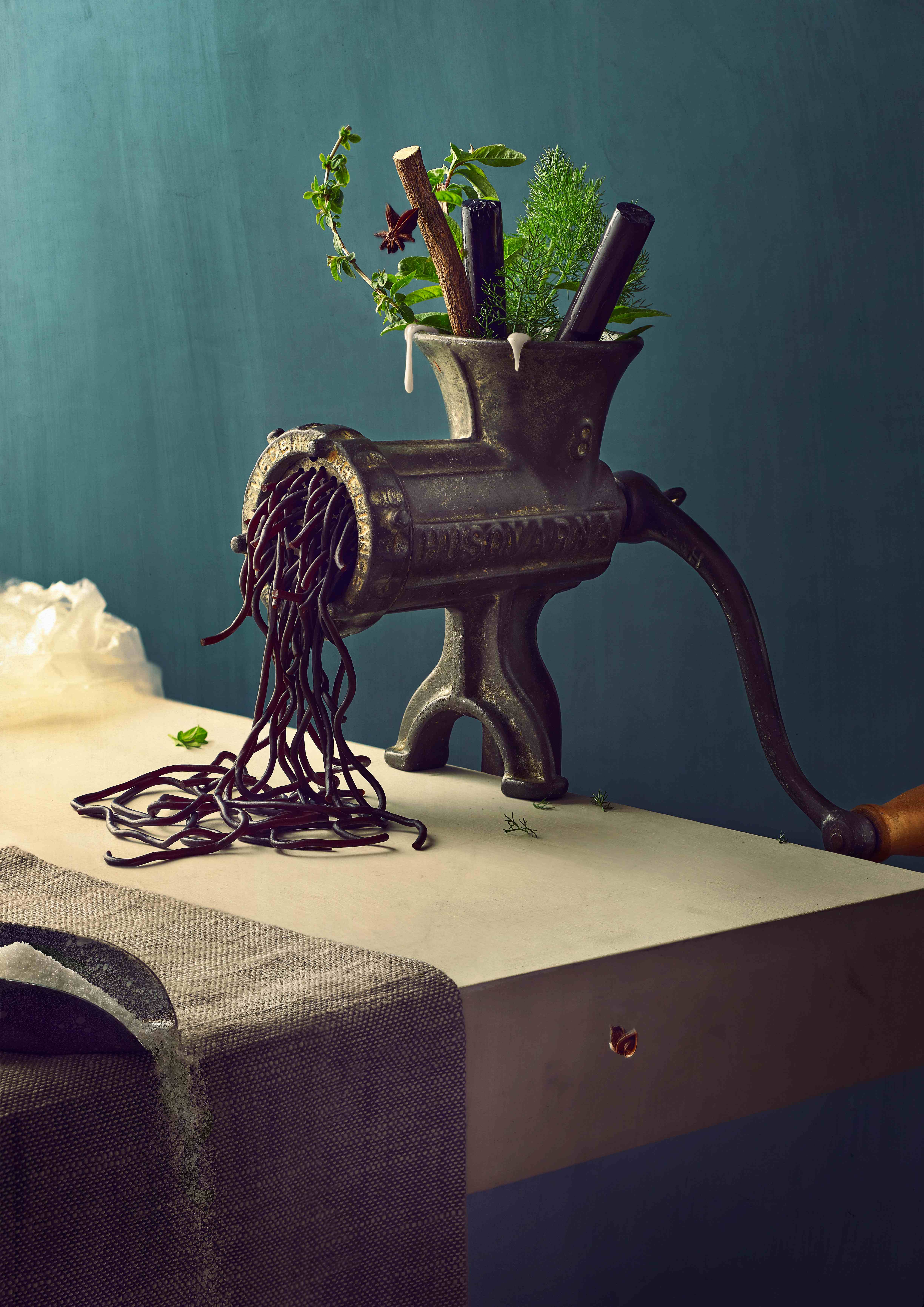 ' LICORICE ' is part of my photographic art serie ‘ REMINISCE ‘ This series is made in the COVID-period 2020. The story behind it : Reminiscing in a time of self isolation, looking back at some old photos, thinking about simple childhood food memories that made my happy as a little child, an often nostalgic recalling from long past and gone, that brings an image from the past into the mind, combining it into a few minimalistic conceptual images, together with some old kitchen tools that I have found in my grandmothers barn. (The serie is six times Internationally awarded & shown on Belgian television) In my work, i play with the viewers perception, exploring the boundaries of traditional photography combined with digital techniques. 1/1 edition ( 6926 x 4897 ) A physical print will be sent to the first collector HandcraftedWithLoveBy_WesleyDombrecht