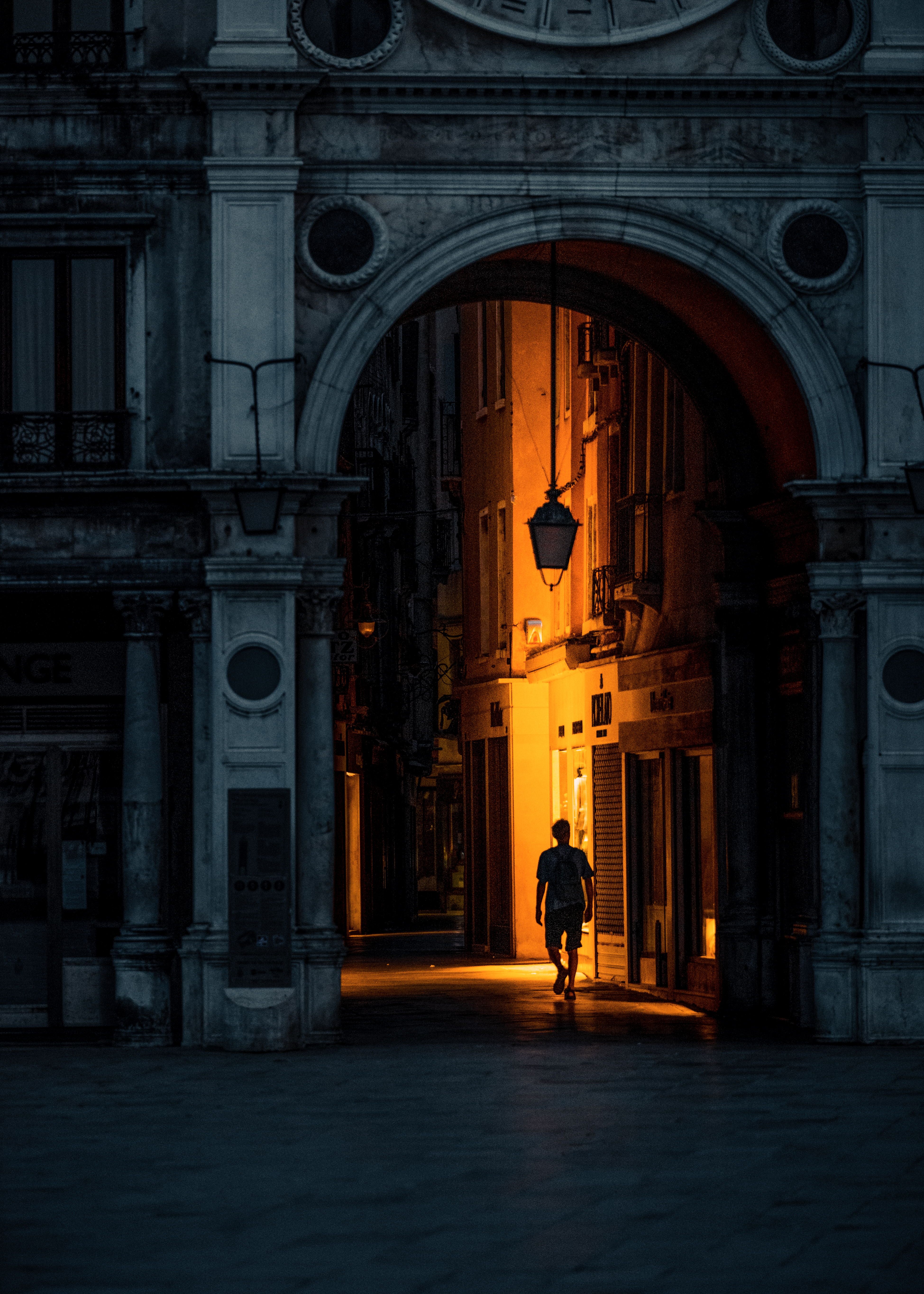 Venice, early in the morning. The sun hasn’t come up yet, but the photographer is already on his way and scouts the city’s streets and squares for possible photo spots. A fresh but warm breeze fills the humid air as he walks onto Saint Mark’s Square. There his gaze is drawn to a doorway, faintly lit by an enticing warm and golden light. He knows, this is the shot he was looking for. My collection “Create” is all about creating, about going outside to produce art, and about following an artist’s purpose. “Solitary” is one of the exceptional highlights that materialize during my work, a milestone of my photographic journey. The doorway sets the frame for the favorably lit alley leading to stalls around the square. A man walks through it, just at the right time to add some movement. The viewer can feel the morning breeze but is drawn into the doorway at the same time where the spectator’s eyes come to rest.