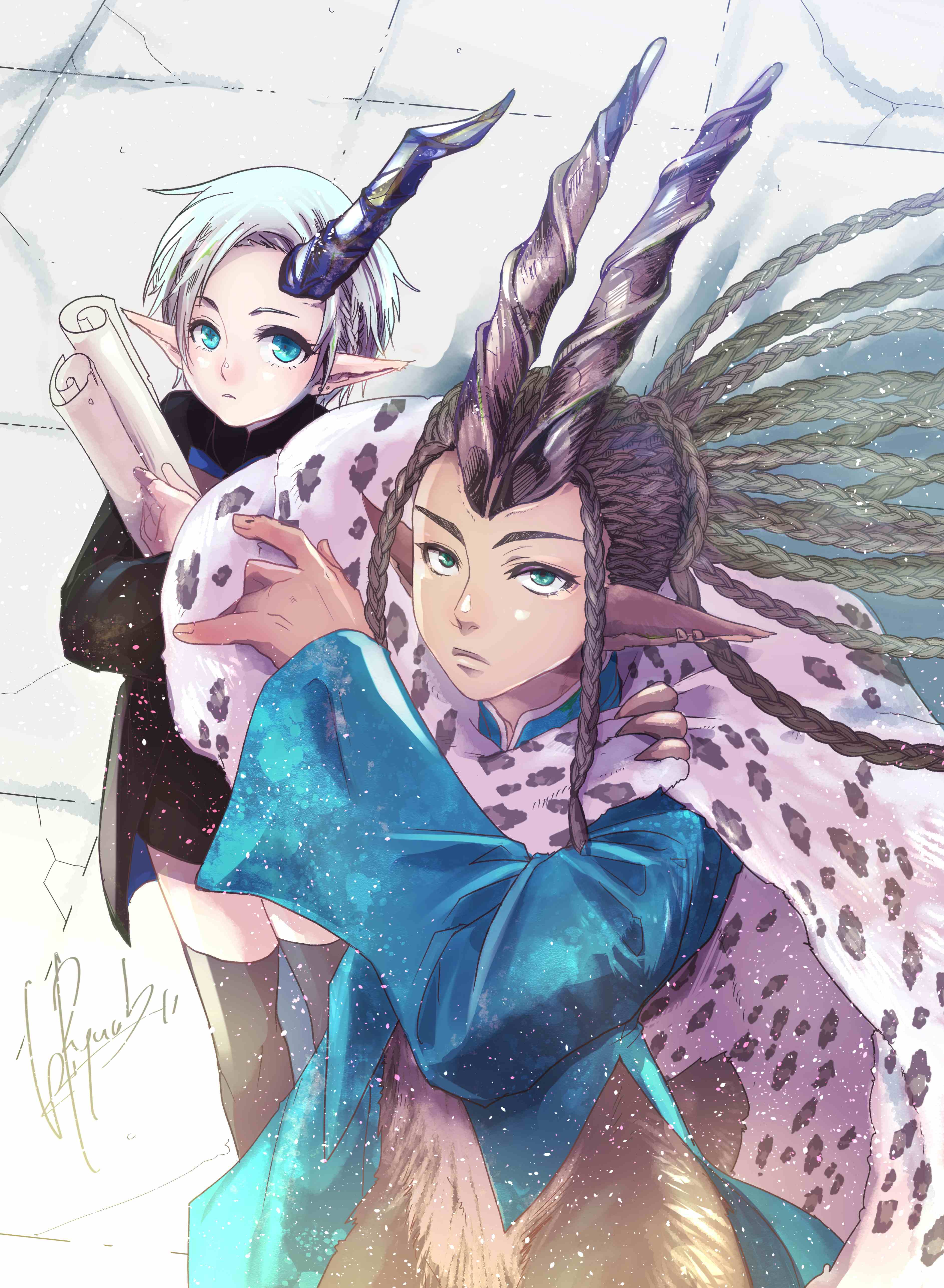 Seek the Truth Sinana is a boy of mystery. One day, Prince Makolov was strolling along when he saw a sack of shreds fall from the carriage in front of him. The fairy accompanying her opened the sack with a quizzical look on her face and found a boy with a beautiful, almost transparent skin and a horn like ore. If left unattended, he would be preyed upon by wild dogs. Prince Makolov has no choice but to take him on as a follower. Who in the world is Sinana? He is mute and seems to have no memory, and the place where the two horns were supposed to be is covered with an old sealing spell. They set out in search of the truth.