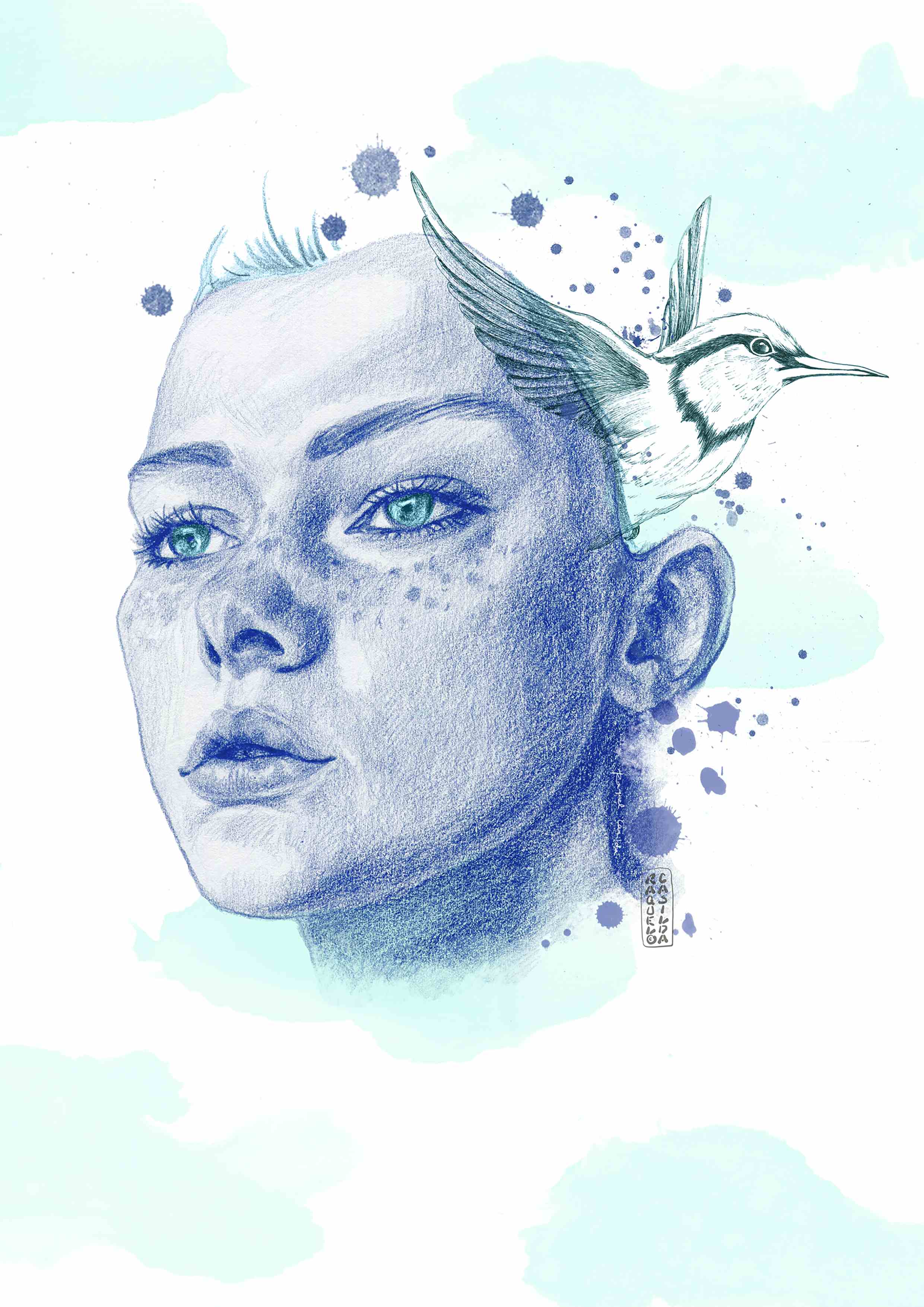 'She stretches her arms out, stares up at the sky, Wishing for the wings, That could teach her to fly, She’s trapped on the earth here, Feet tied to the ground, The forces of gravity, Keep pushing her down, To the world she’s one person, To one person, the world, She wants to be an angel, But she’s only a girl, And though she’s life’s puppet, She’ll break all the strings, But for now she’s just dreaming, Of earning her wings.' -Erin Hanson (poet) This is the Poem that inspired this artwork 'Up in the Sky' © Raquel Casilda