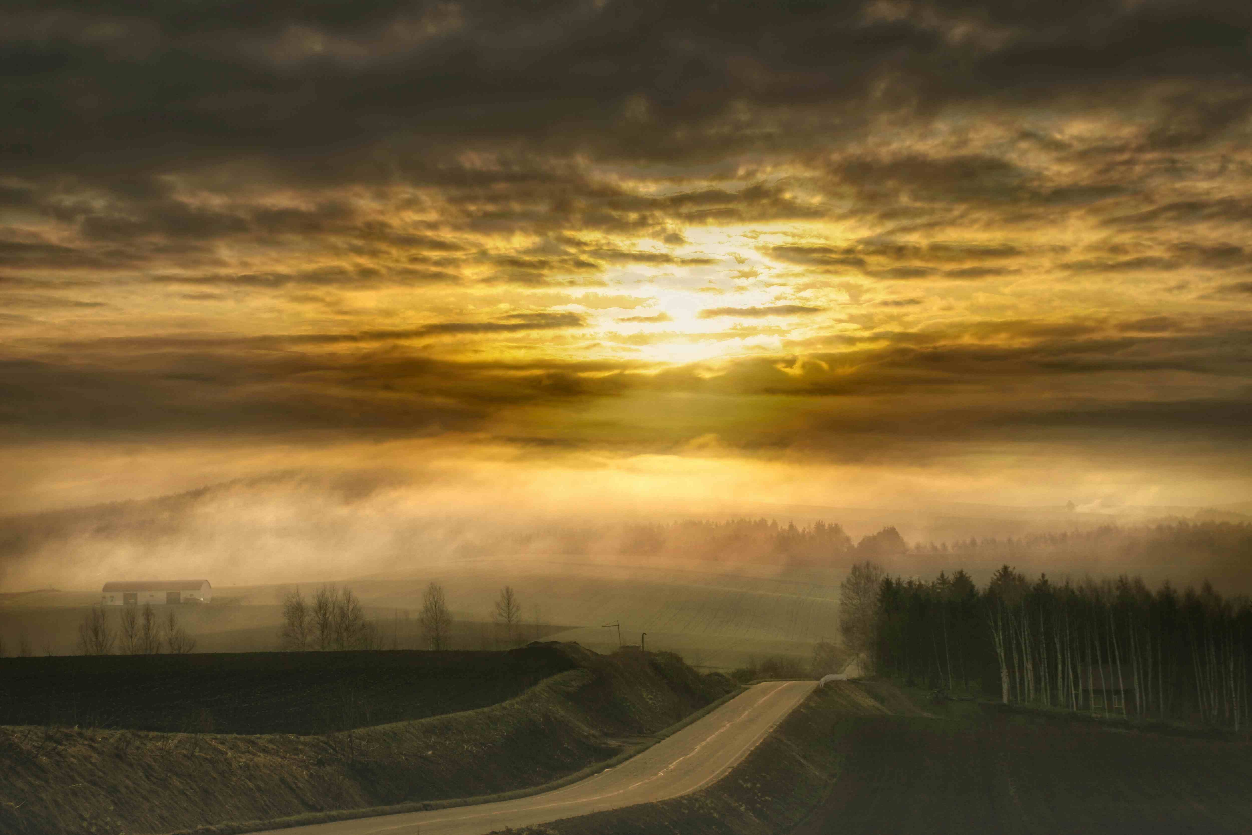 A spring day morning after moving to Hokkaido. I visited a farmland where the snow had finally disappeared. The land was shrouded in a deep fog that blurred the boundary between it and the sky, making it seem as if it were drifting in the clouds. The fog rose and fell with the slightest breeze and slowly drifted away. Soon, the sun began to rise over the fog-shrouded spring farmland. This photo was originally published on the photo review site 1x.com. size:5000 × 3333 Taken in April 2012 Japan, Hokkaido, Asahikawa City