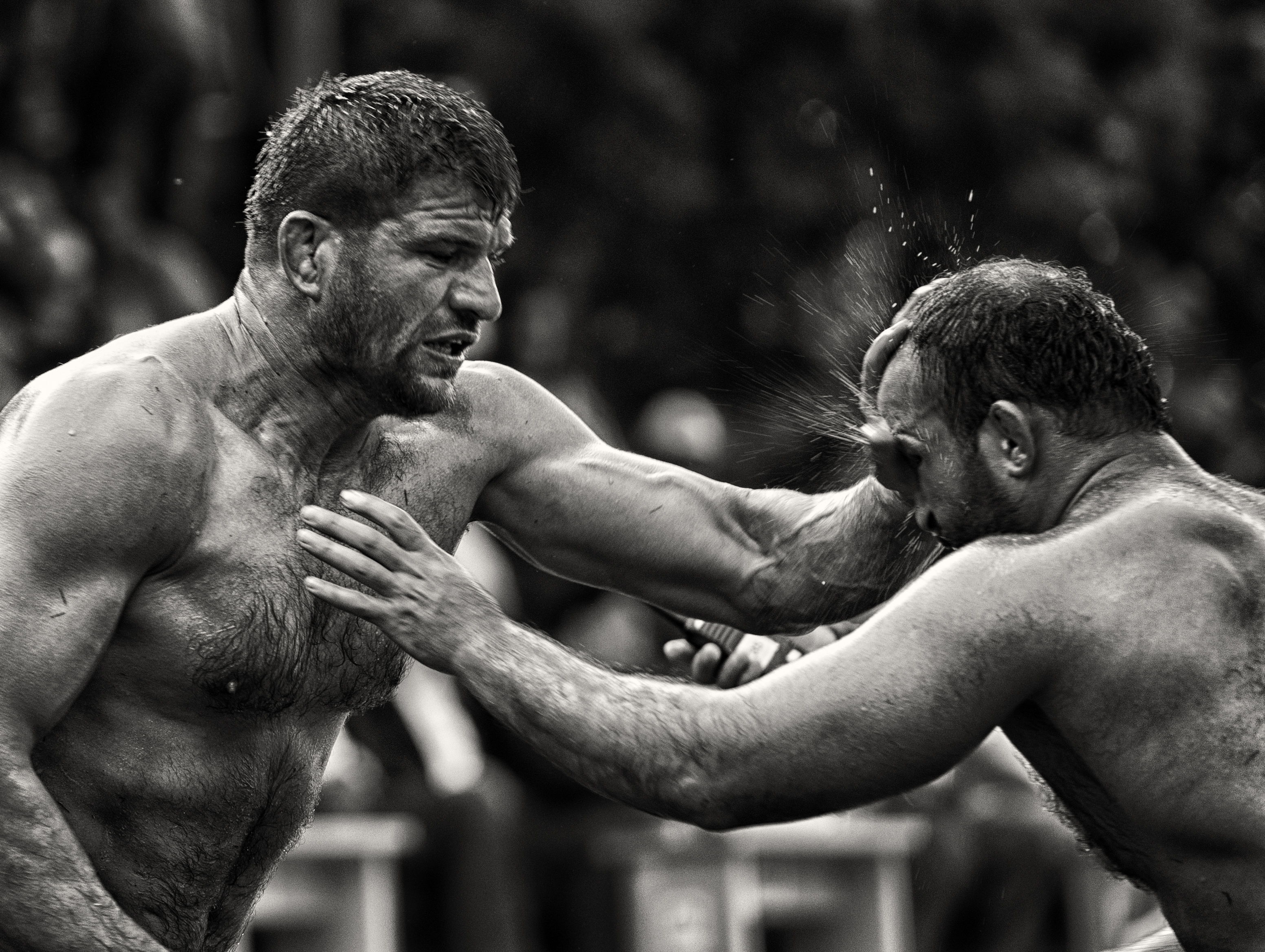 Oil wrestling is a very old sport, opponents fight fiercely here, I tried to explain one of the most difficult moments of this struggle with this work, thi