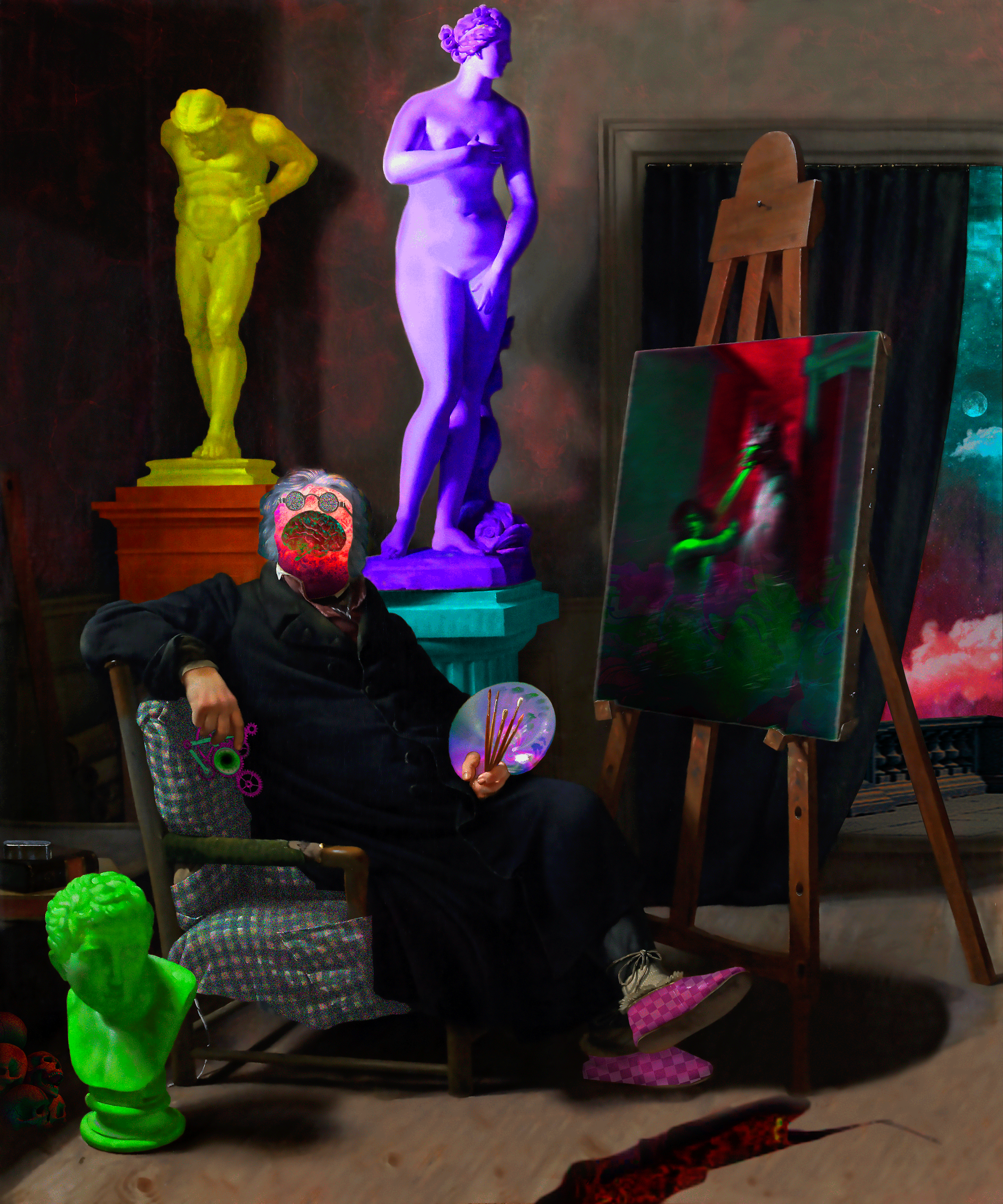 At night and in silence, he exposes his soul in his piece of art. bringing the rainbow in the gray dawn. he paints with illusion until the moon disappear