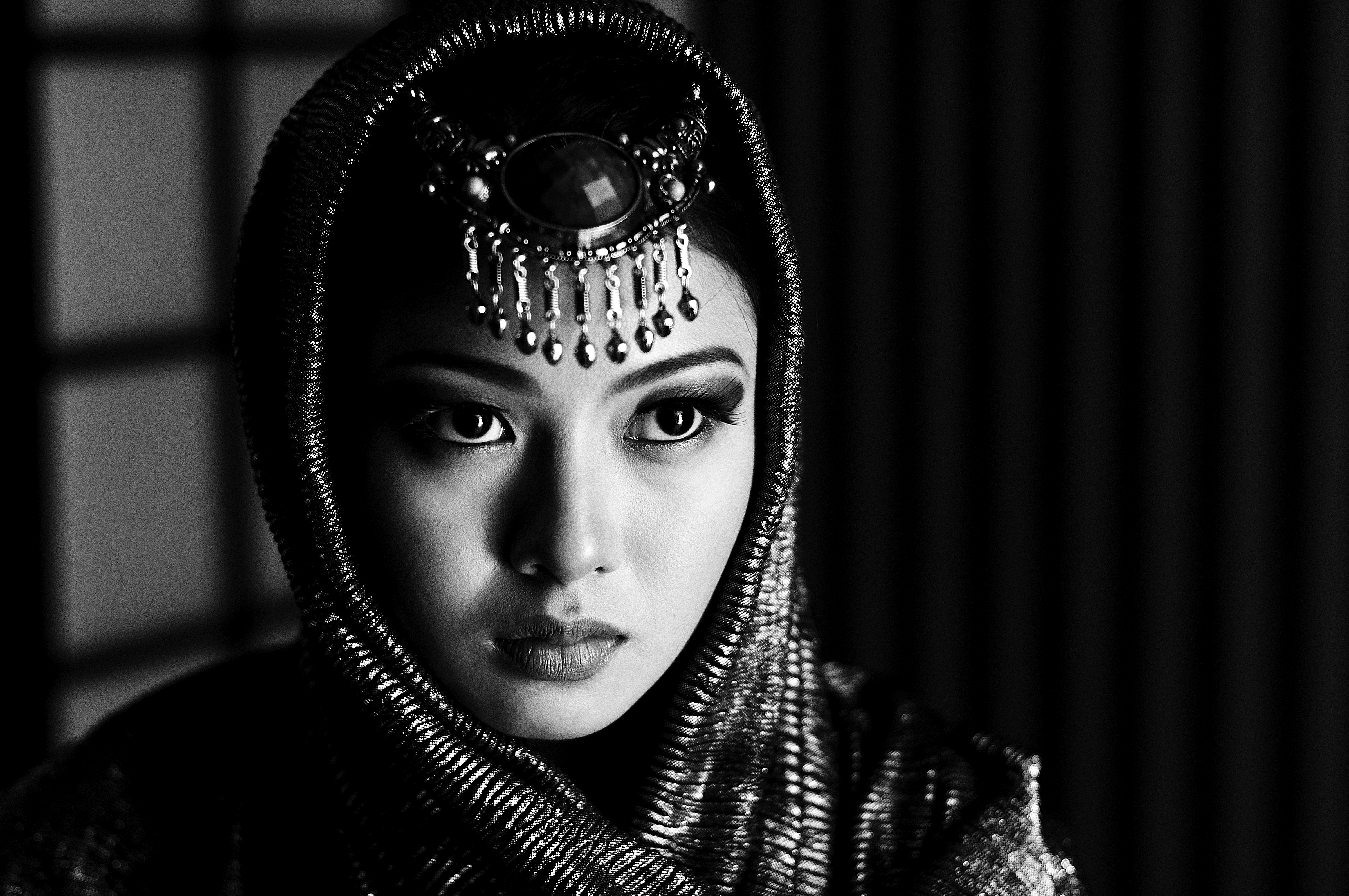 High contrast black and white portrait depicting Filipina beauty. Acquiring the NFT also includes a 20" x 30" photo canvas to be sent to buyer's preferred