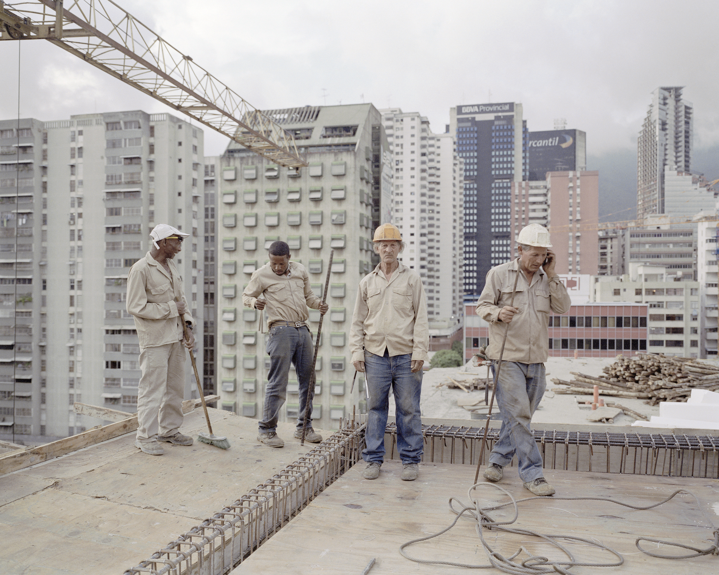 Some workers on a roof in a construction site in Caracas. This building is part of the Misión Vivienda (Housing Mission) programme through which some 2 mil