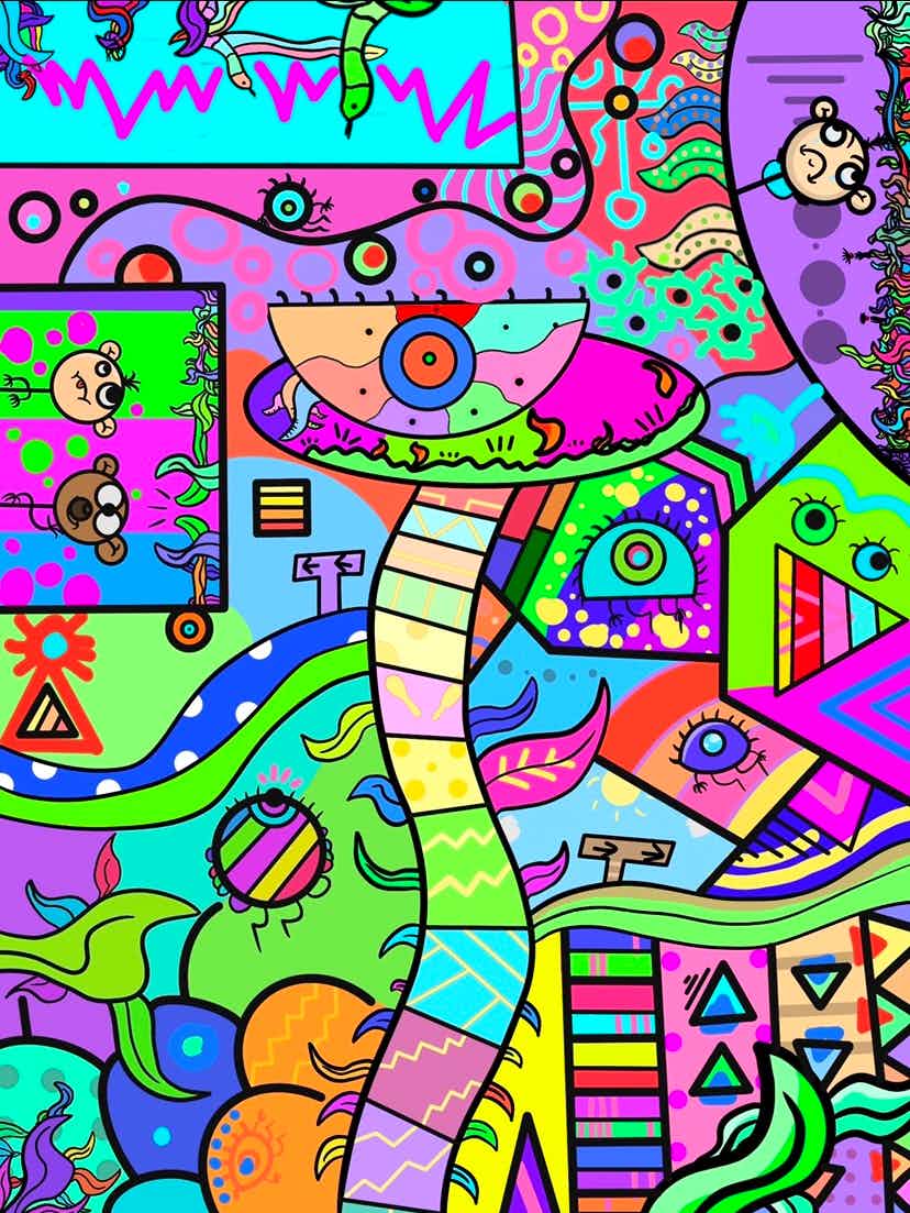 The Brilliant Caterpillar was created by 9 years old abstract/cubist young artist Jacob. He created this art piece using procreate with many colors and sha