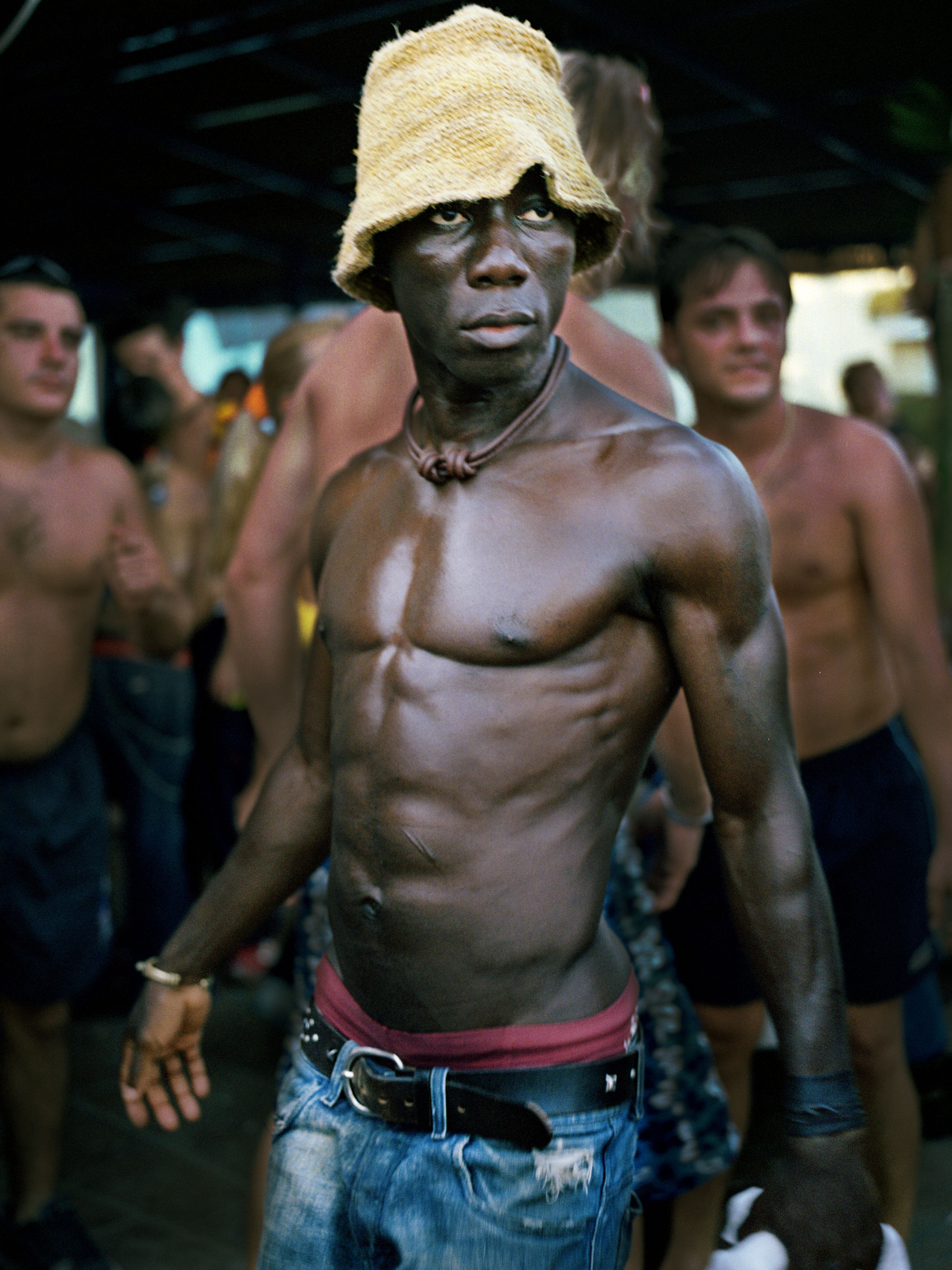Raver photographed on the beach partying at 'Bora Bora' bar in Playa D'en Bossa, Ibiza in 2001 MILLENNIUM DAWN COLLECTION: This collection documents th