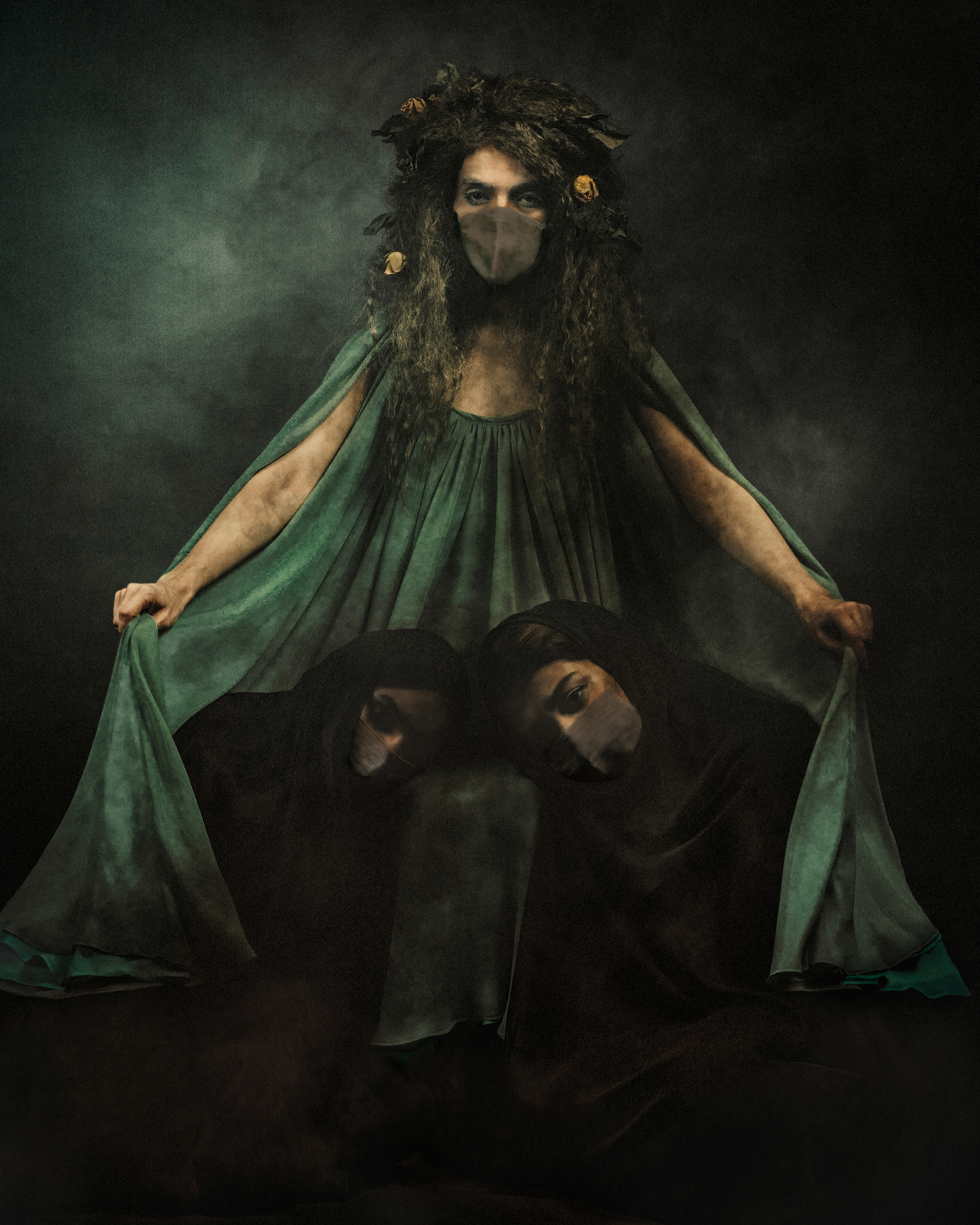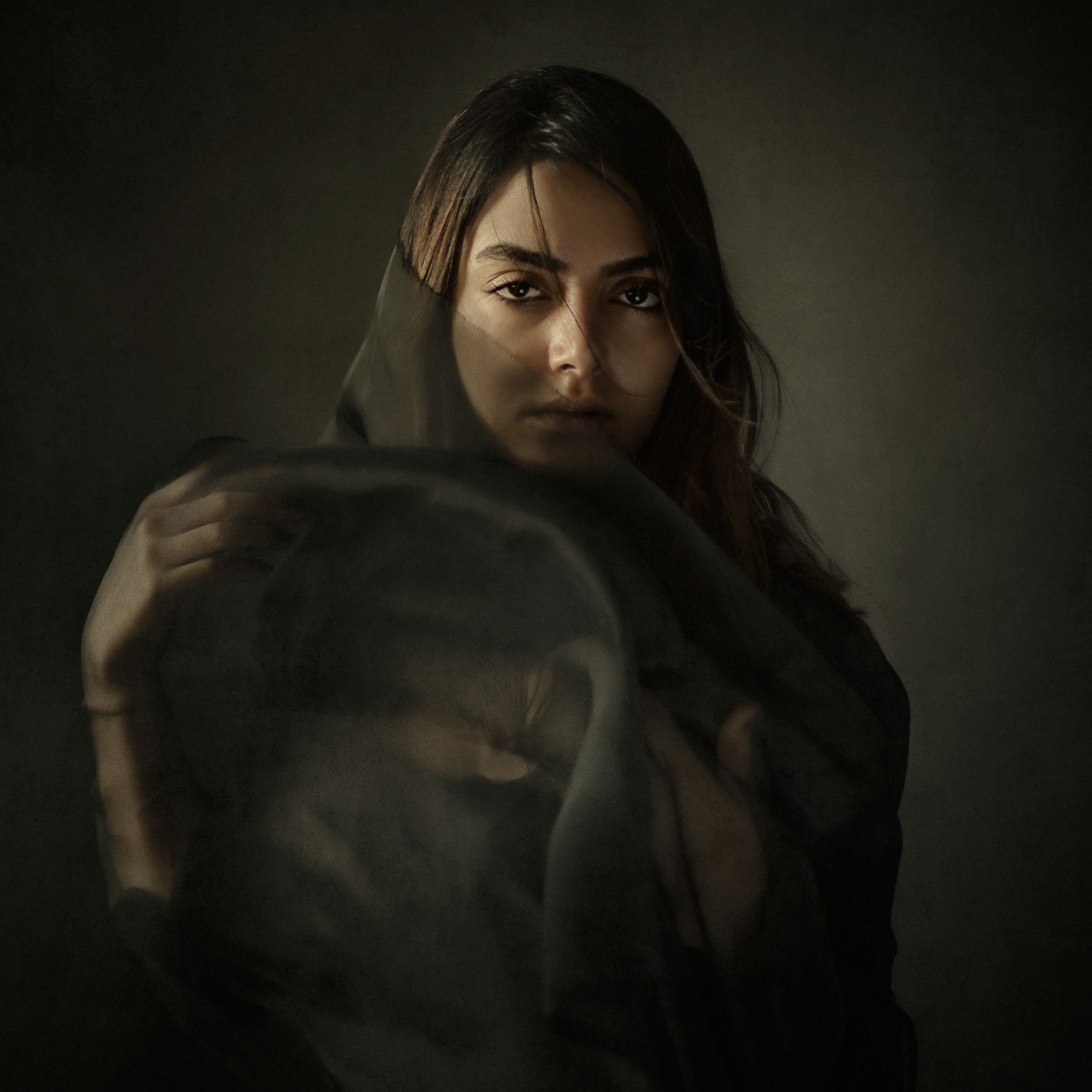 Nastaran symbolizes a woman who has drawn her darkness out of the deepest corners of her being. The shawl she is wearing stands for her identity, which is