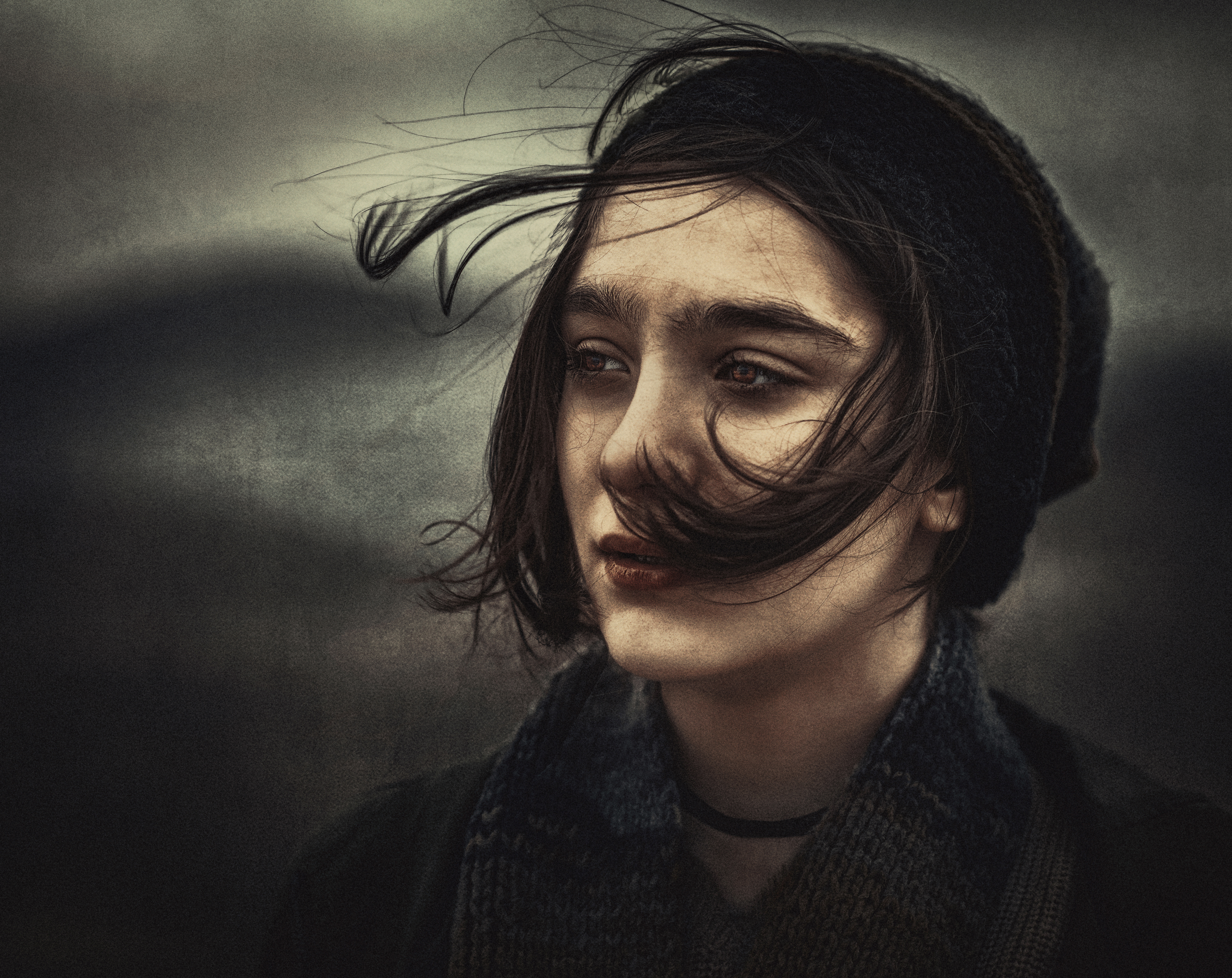 In this image, I aimed to shed light on the inner conflict of the girl, as can be shown with her pale complexion, and effects of outer elements, such as th
