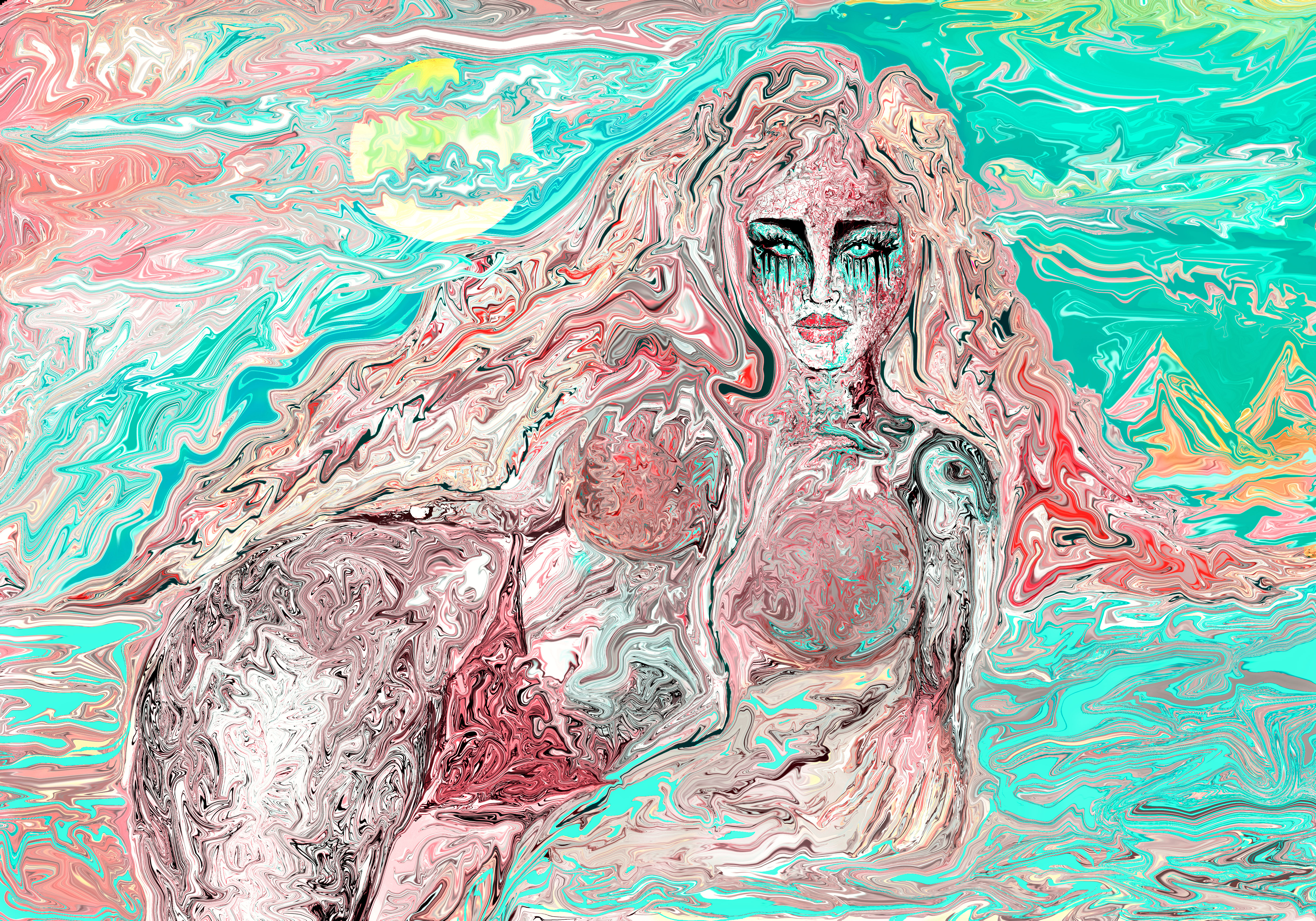 The mermaid was sleeping in her ocean Many fish had gathered around her A whale and a shark also cared for her she was very beautiful and rare and all the
