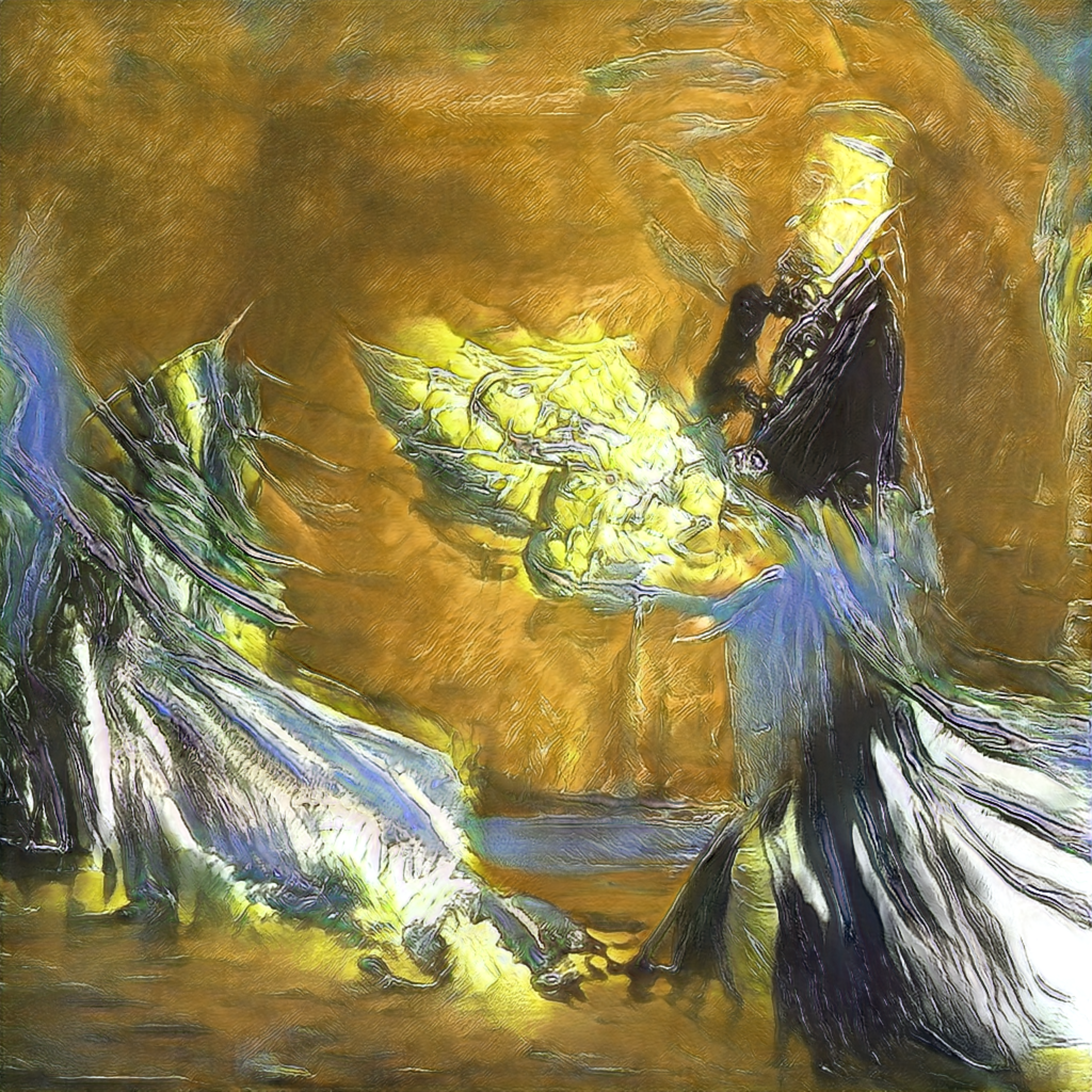 I create my artworks with AI which was trained for 2 years based on huge library of real artworks from around Globe.