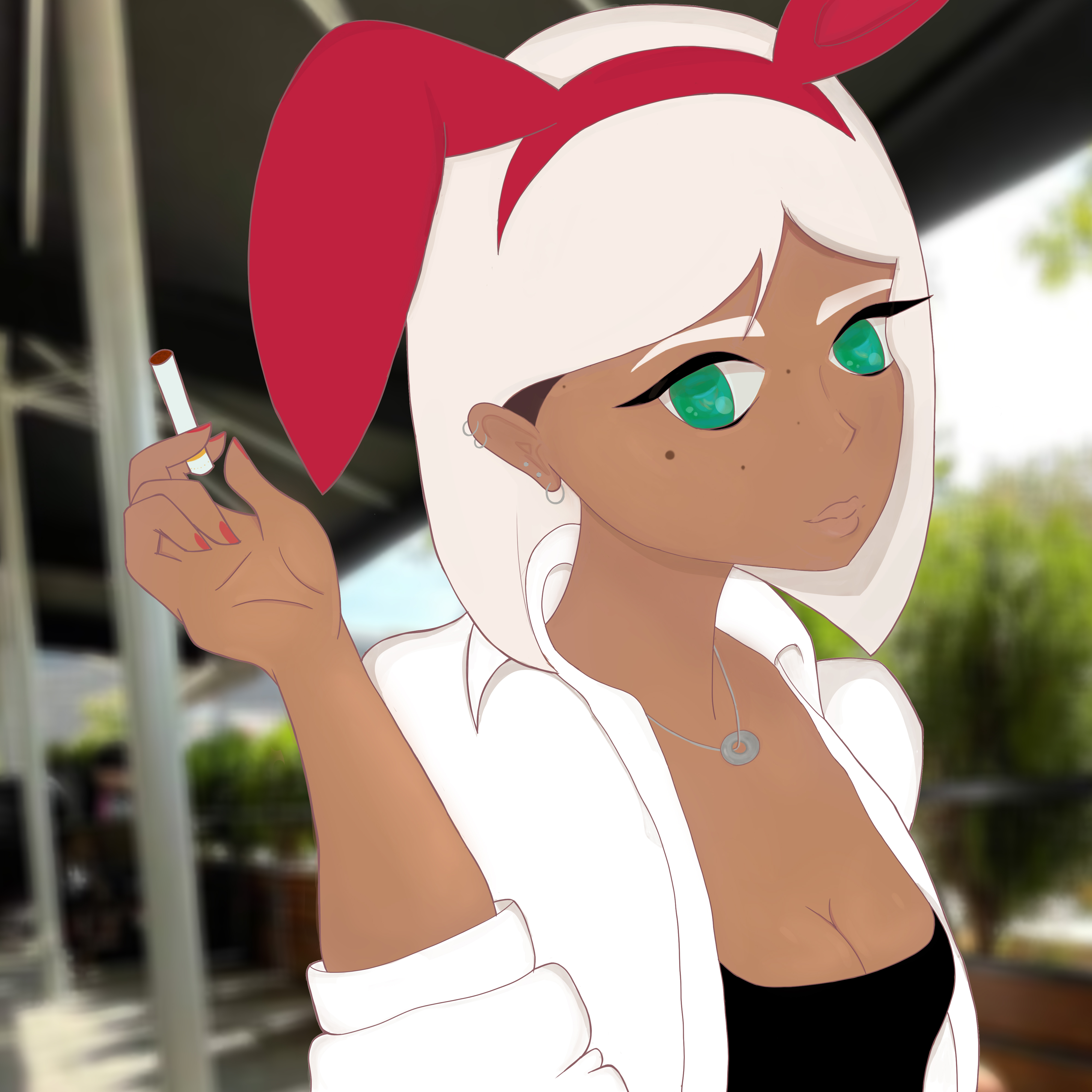 Bunny went to a Coffee Shop with her friends and took some pictures. ♡ She decided to upload one of them to metaverse.