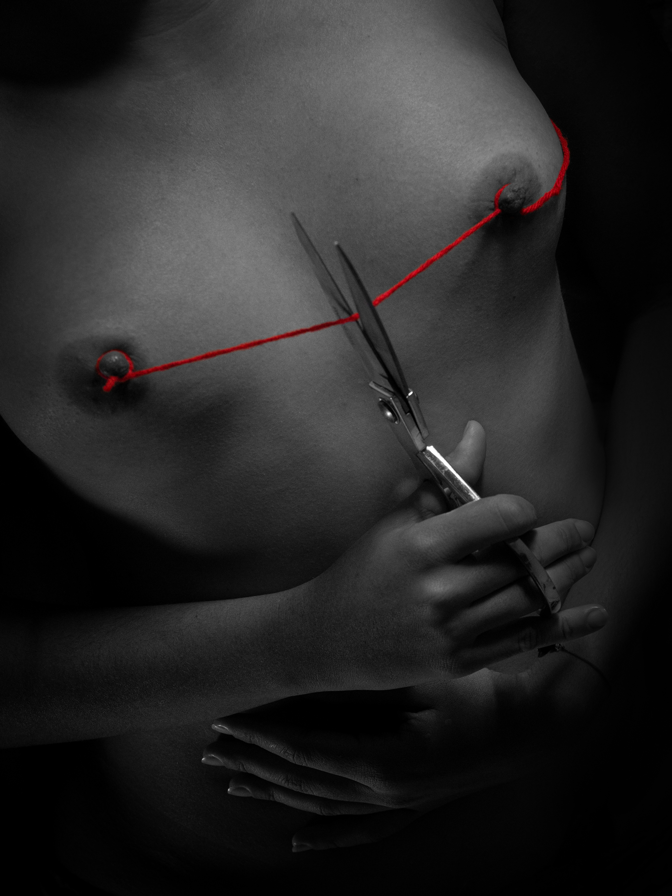 WHY DO YOU TREMBLE? His first time, our first time. A red thread was tied on each nipple and the scene was perfect. - "Why are you shaking?" - "I'm exci