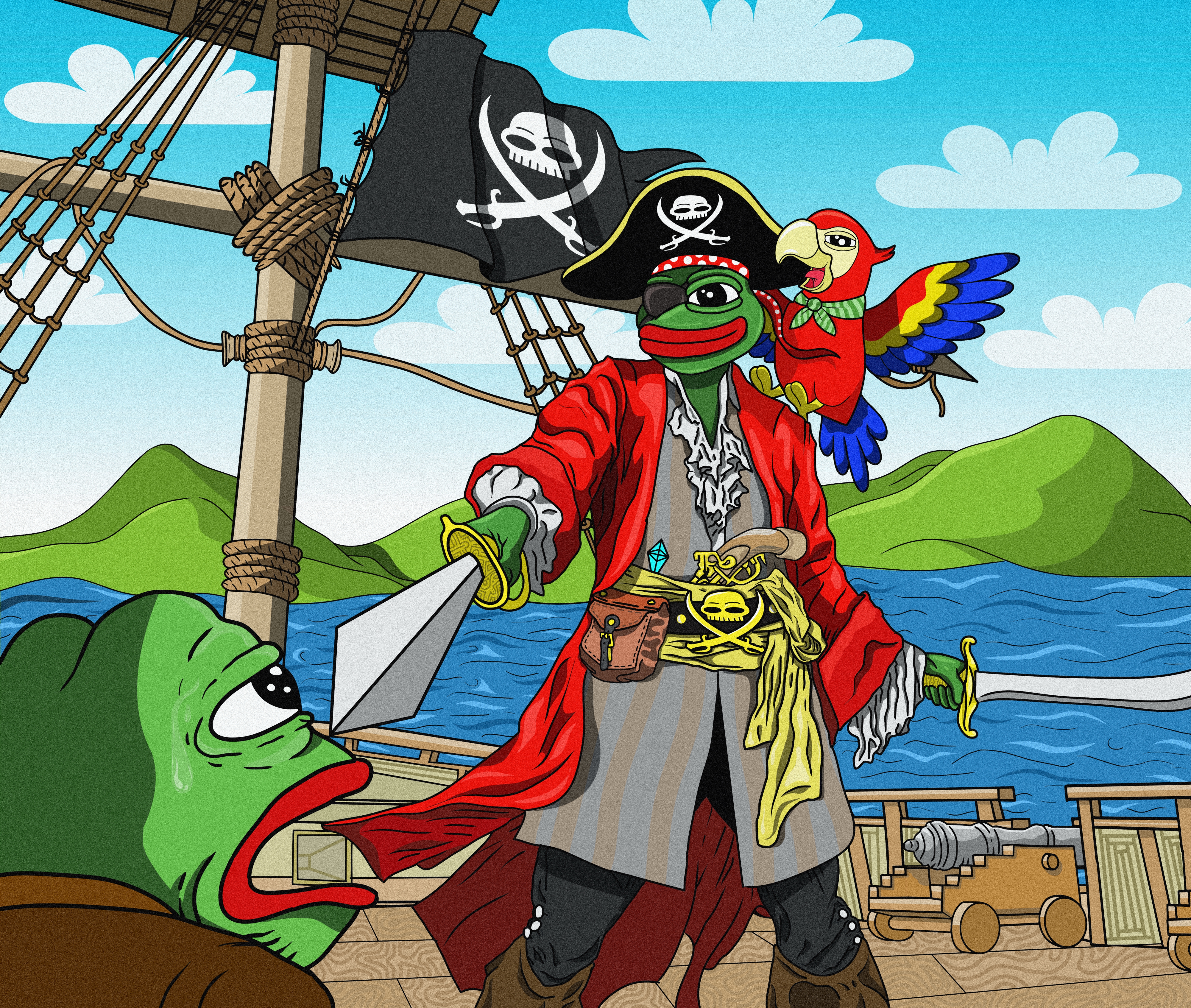 After sailing across the sea for a very long time. Pirate pepe with his pirate crew found a treasure. A very precious ETH Treasure.