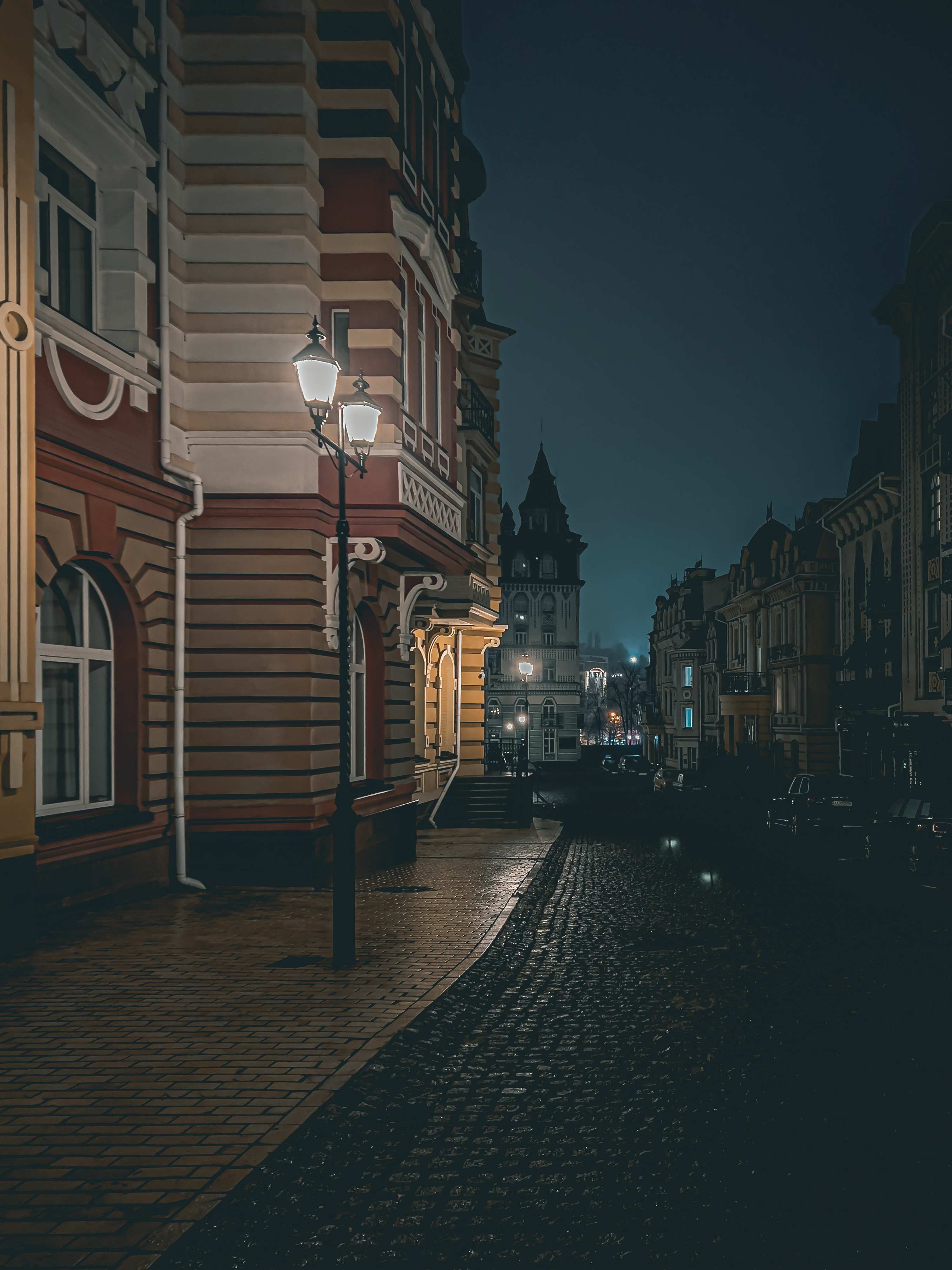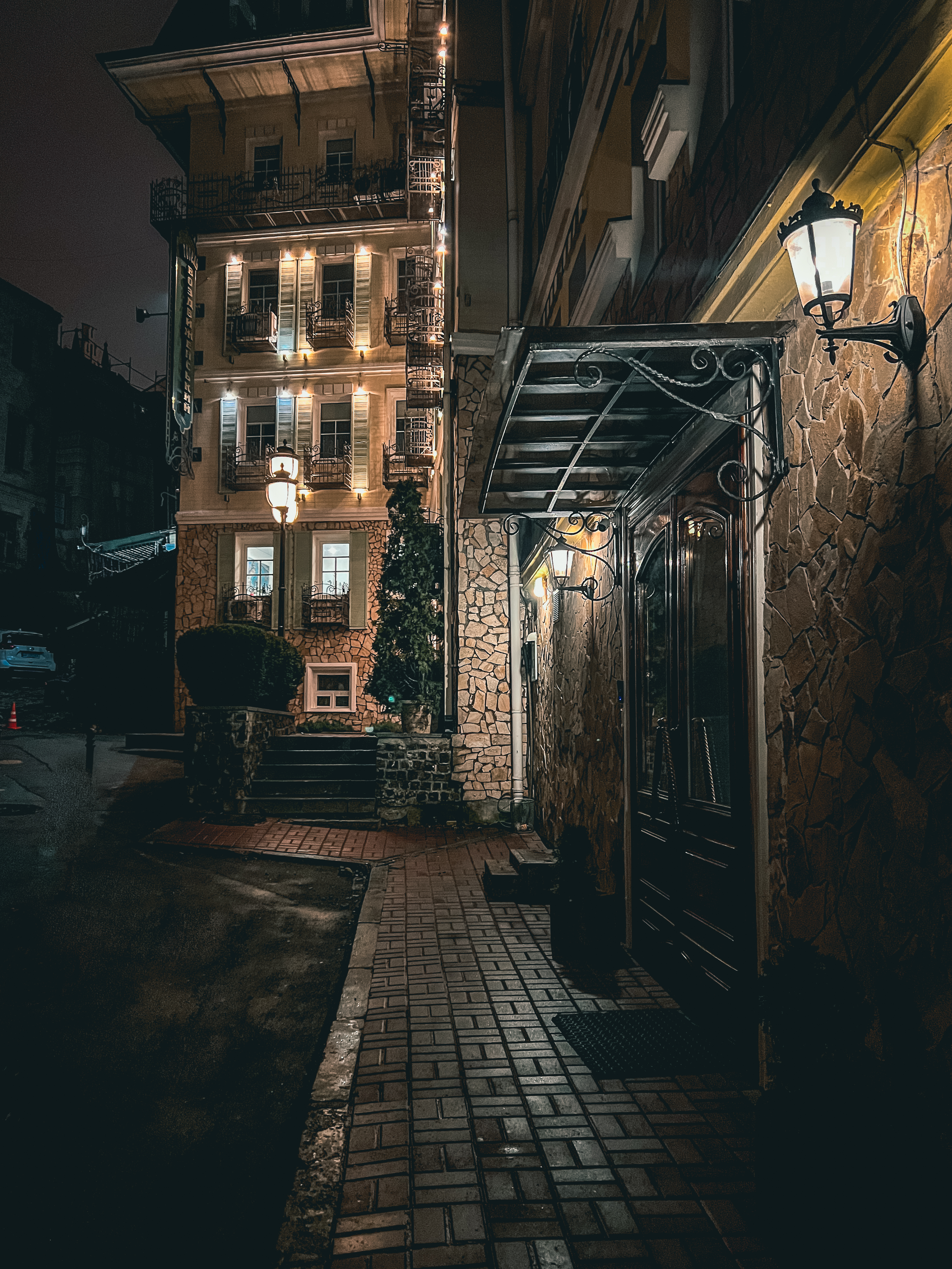 They rode in a taxi across the bridge. It was dark and the city was beautifully illuminated by lanterns. In his hands he held a warm sniffing bundle. His d