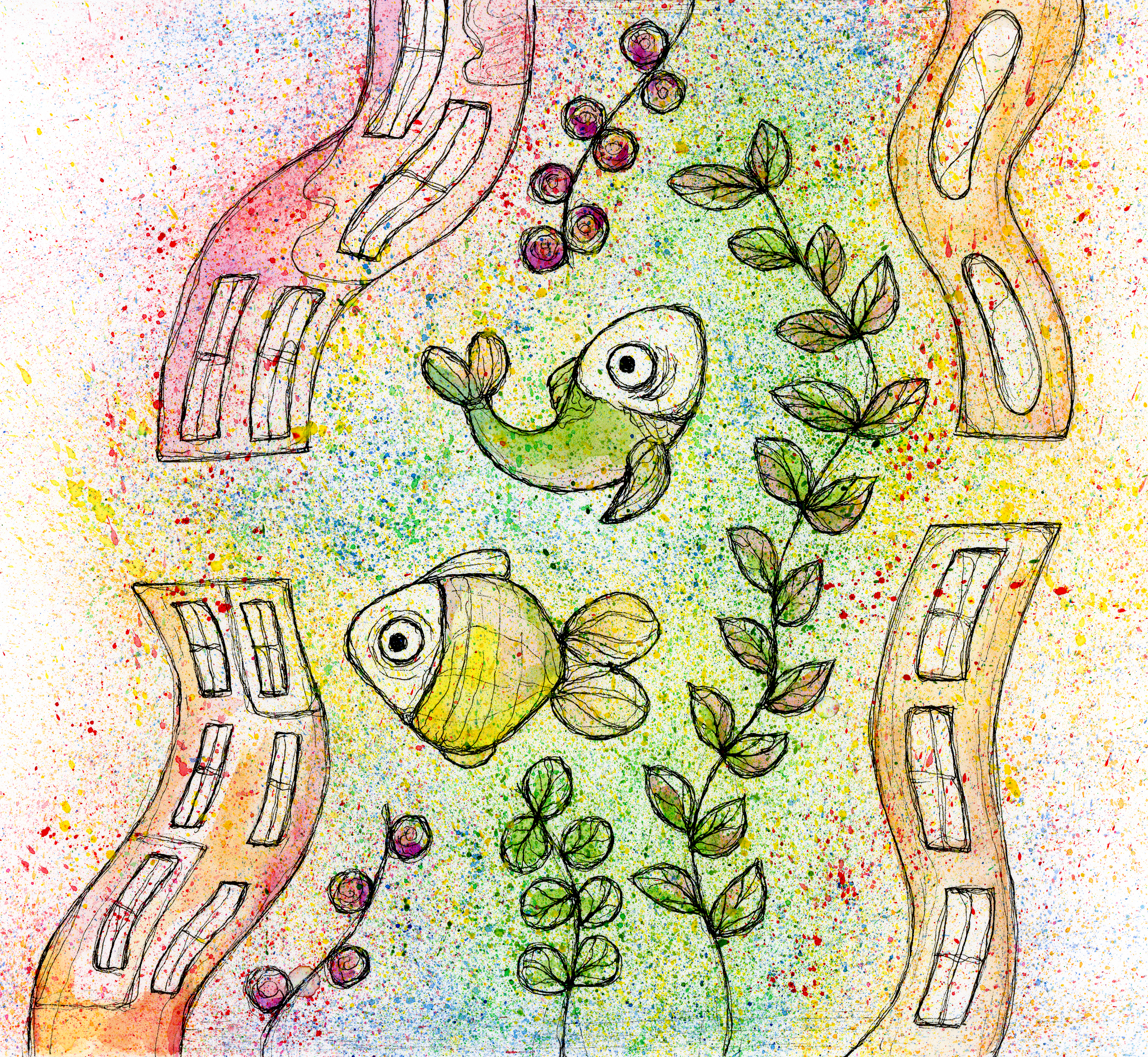 This artwork was made in 2021 using pens and pencils on A4 paper. Adopt my happy fish! Drawing is the beginning of everything. I draw with childish hear