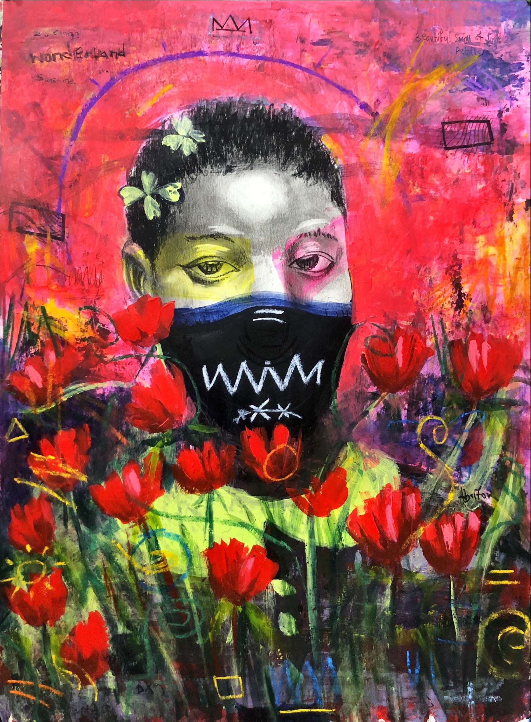 A response to a question i asked my friends "when last did you see a rainbow" ? acrylic on canvas sized 45in X 45 inches