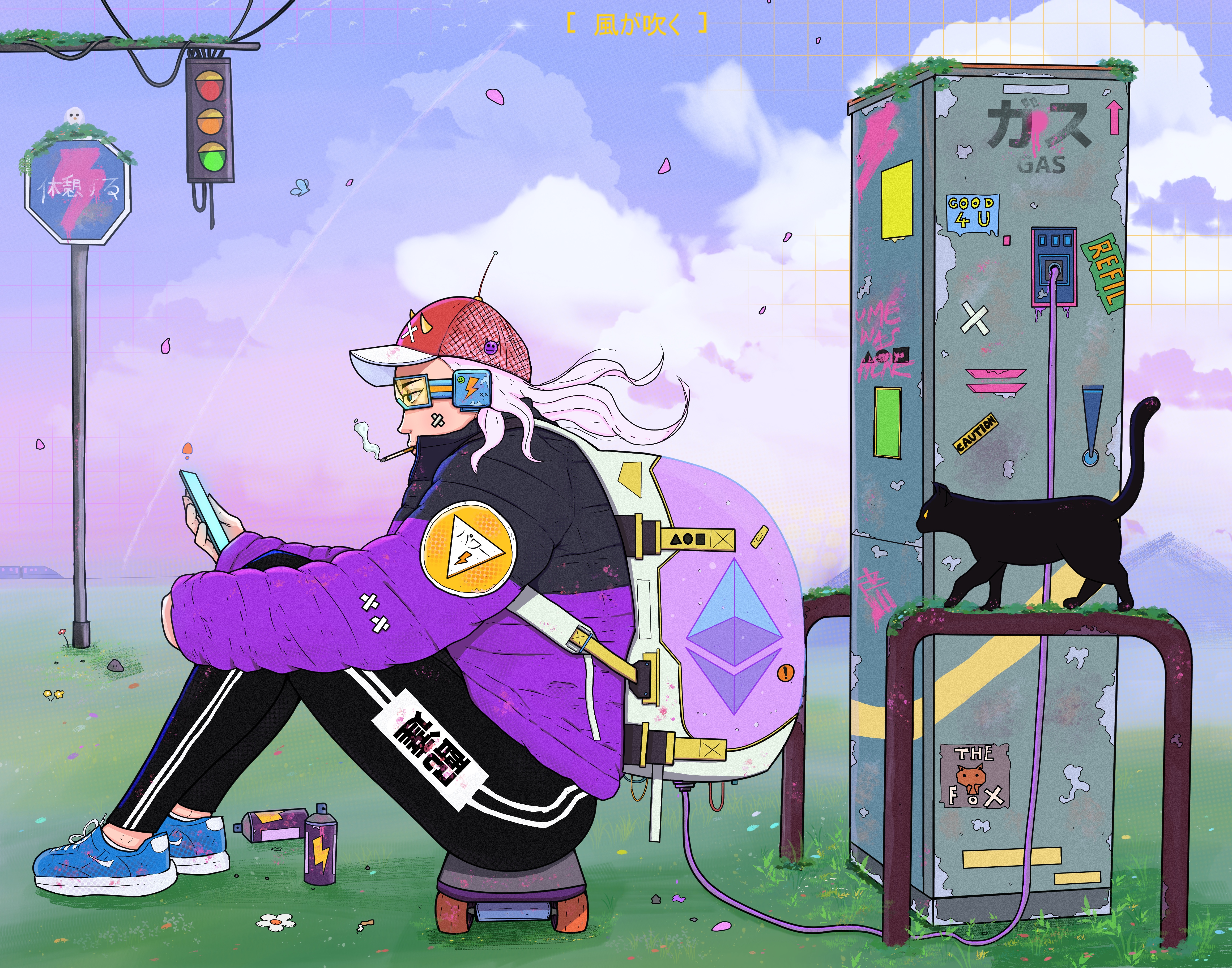 Name - Azure Nickname - Bluebird Location - Sora District Faction - Cyberpunk Ronin Likes - Birds and ice cream Azure is the second character in this sign