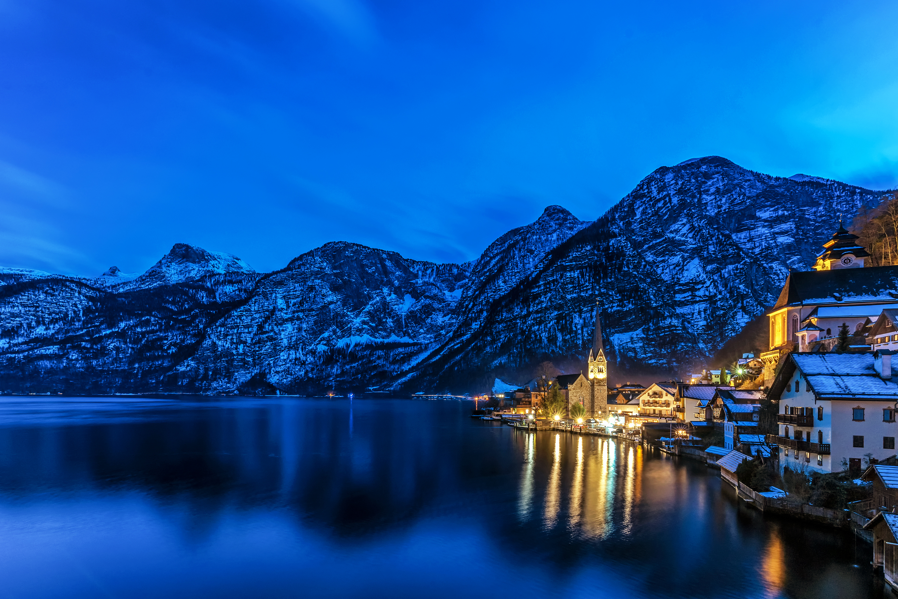 Winter evening fairytale in Hallstatt