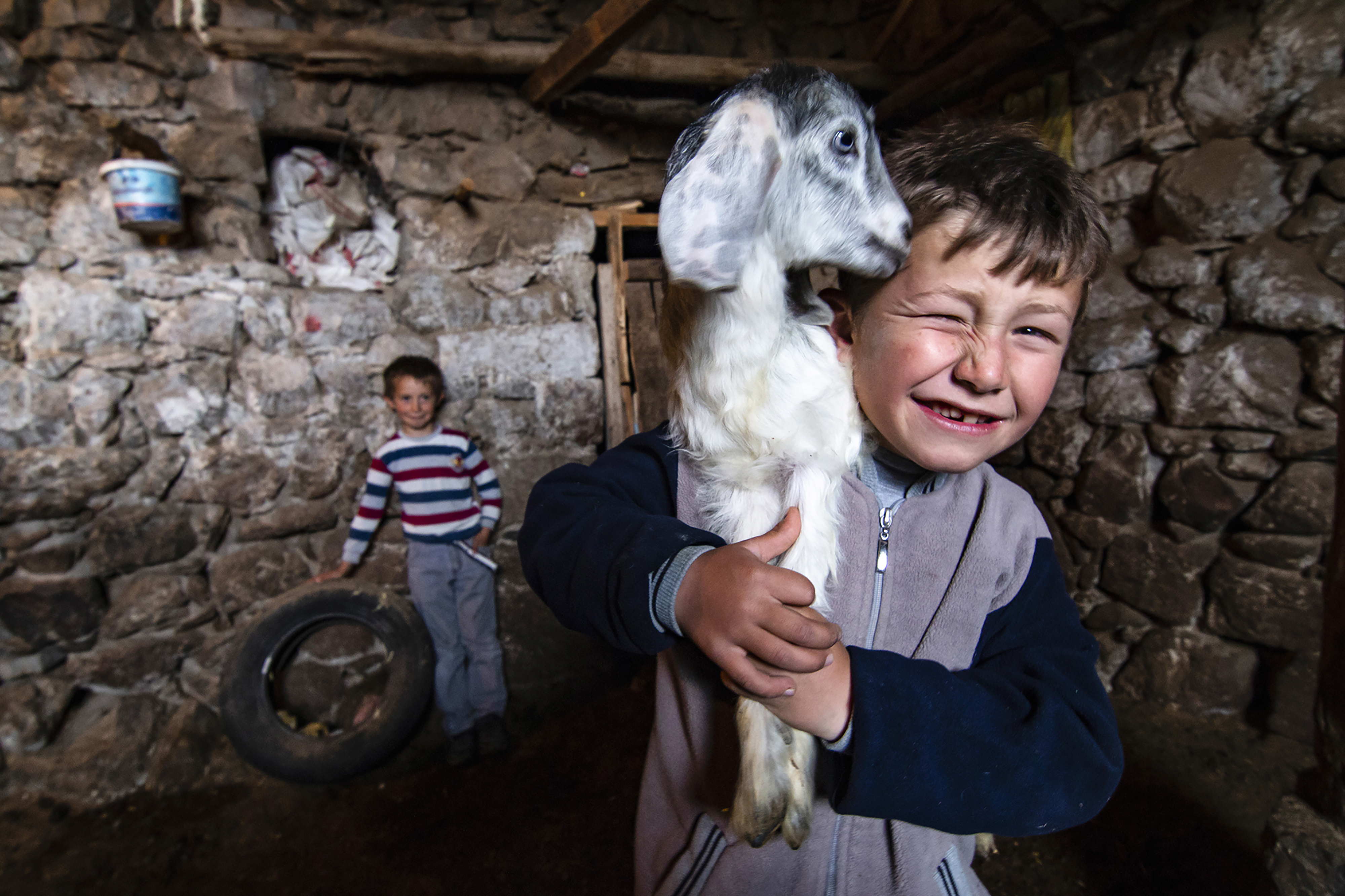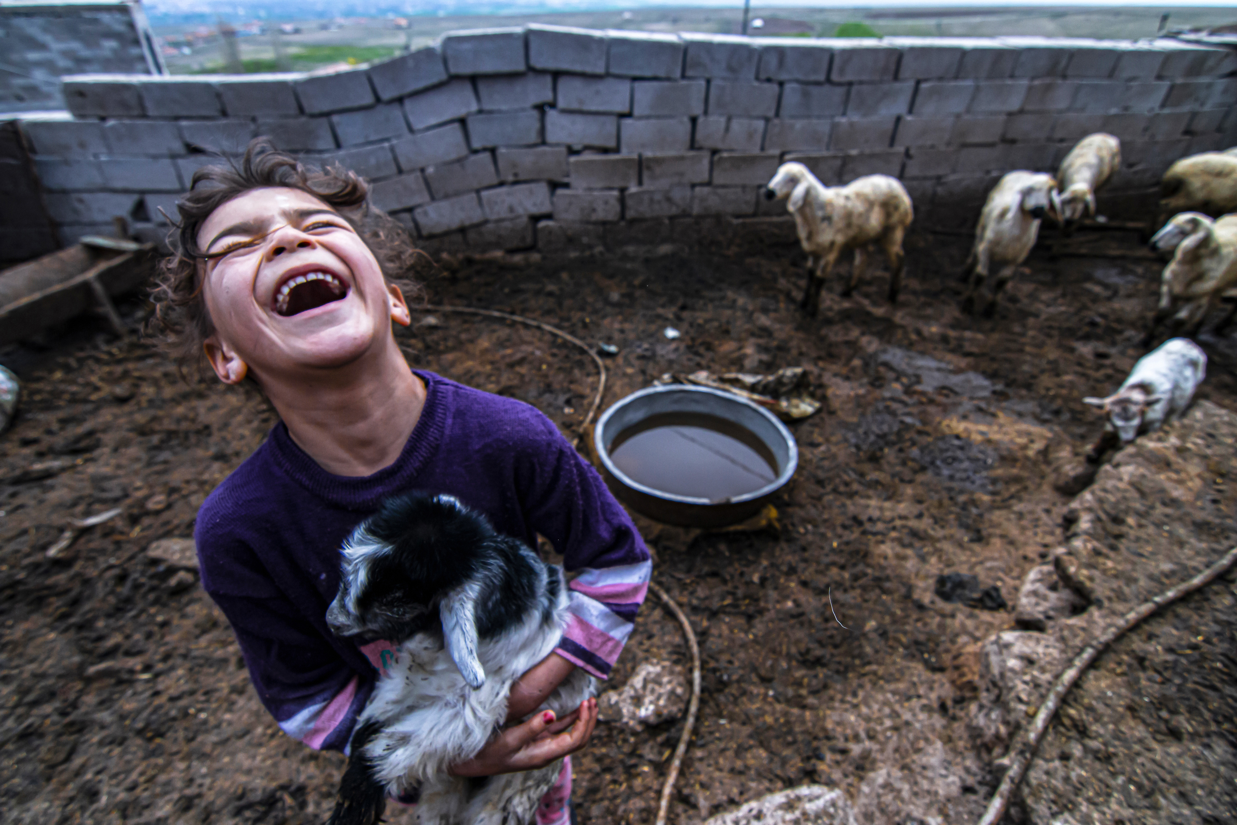 I took this photo in 2015 in a village in Turkey . New born lambs are best friends of children that lives in villages. When I went to this village to docu