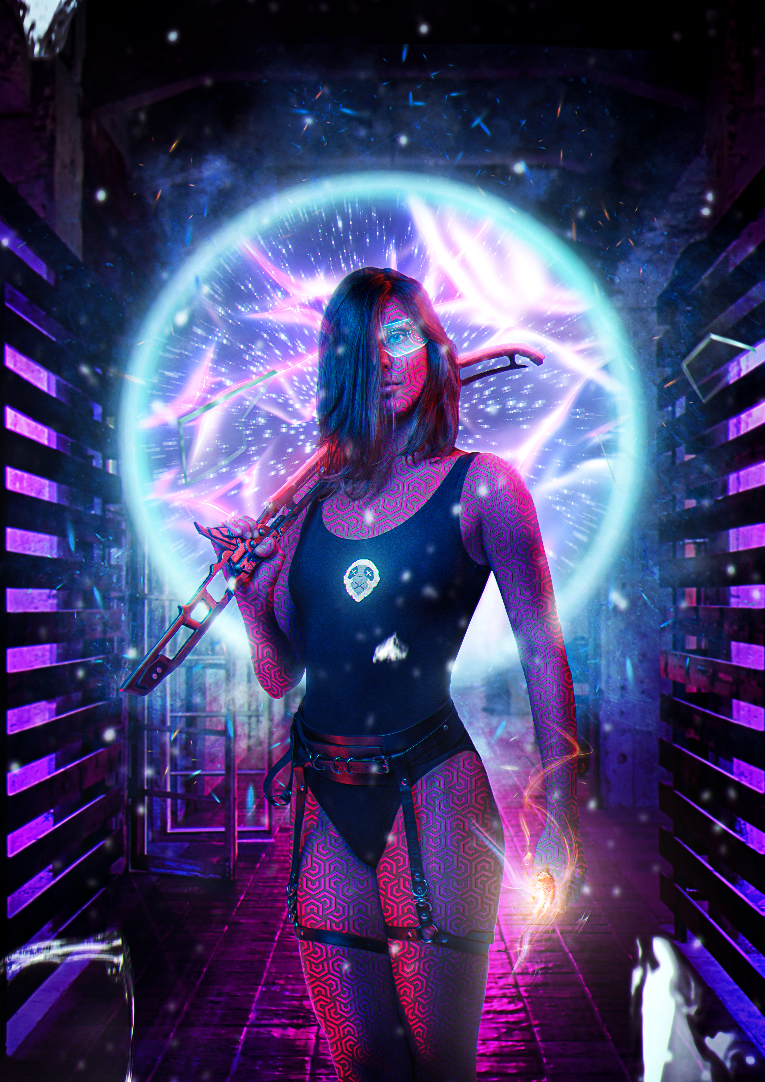 Sunny is a rebellious girl that escapes from enemies with her agility and gets her power from wizard slothes to recieve a gate to Cyberpunk world with her
