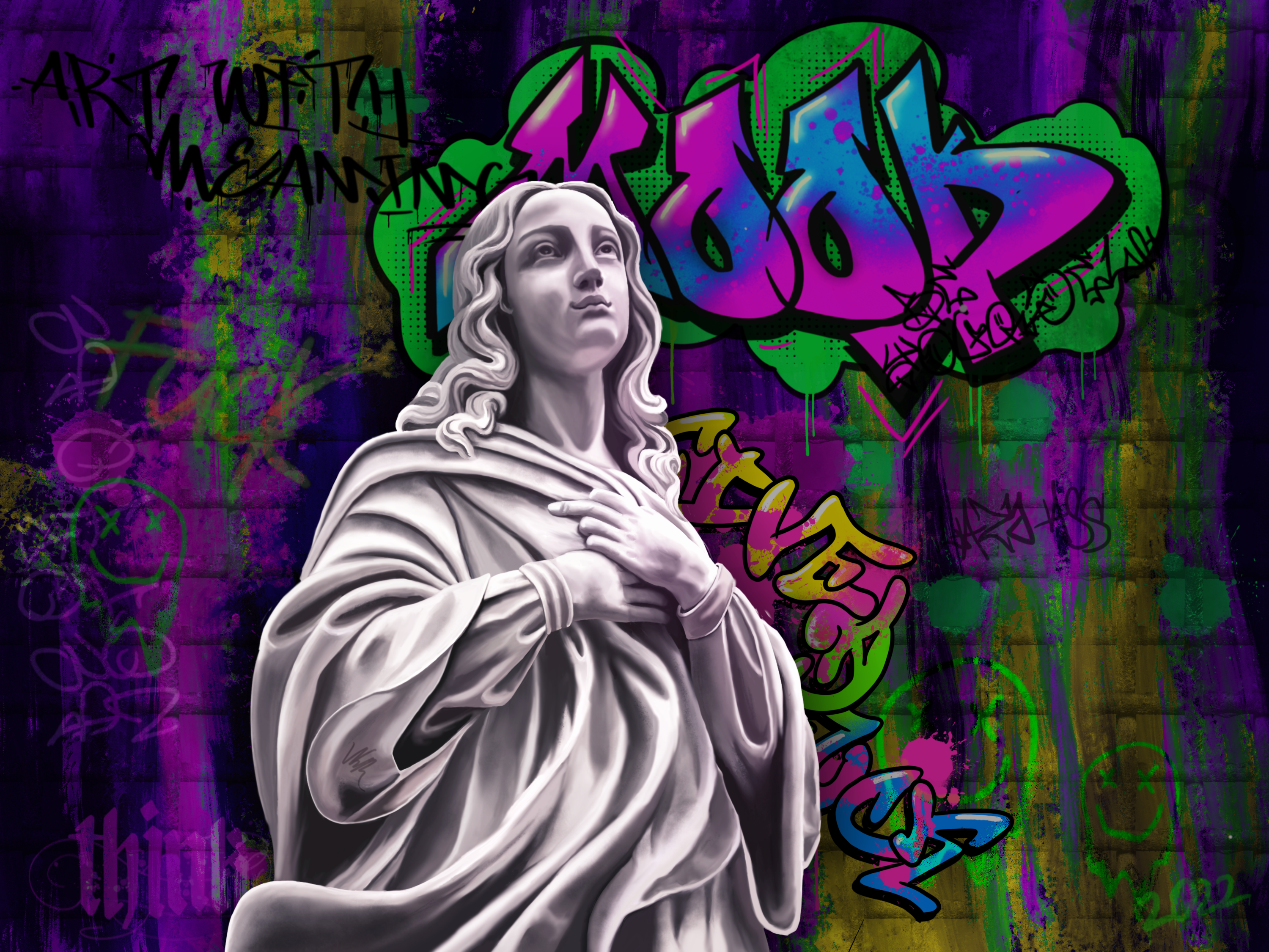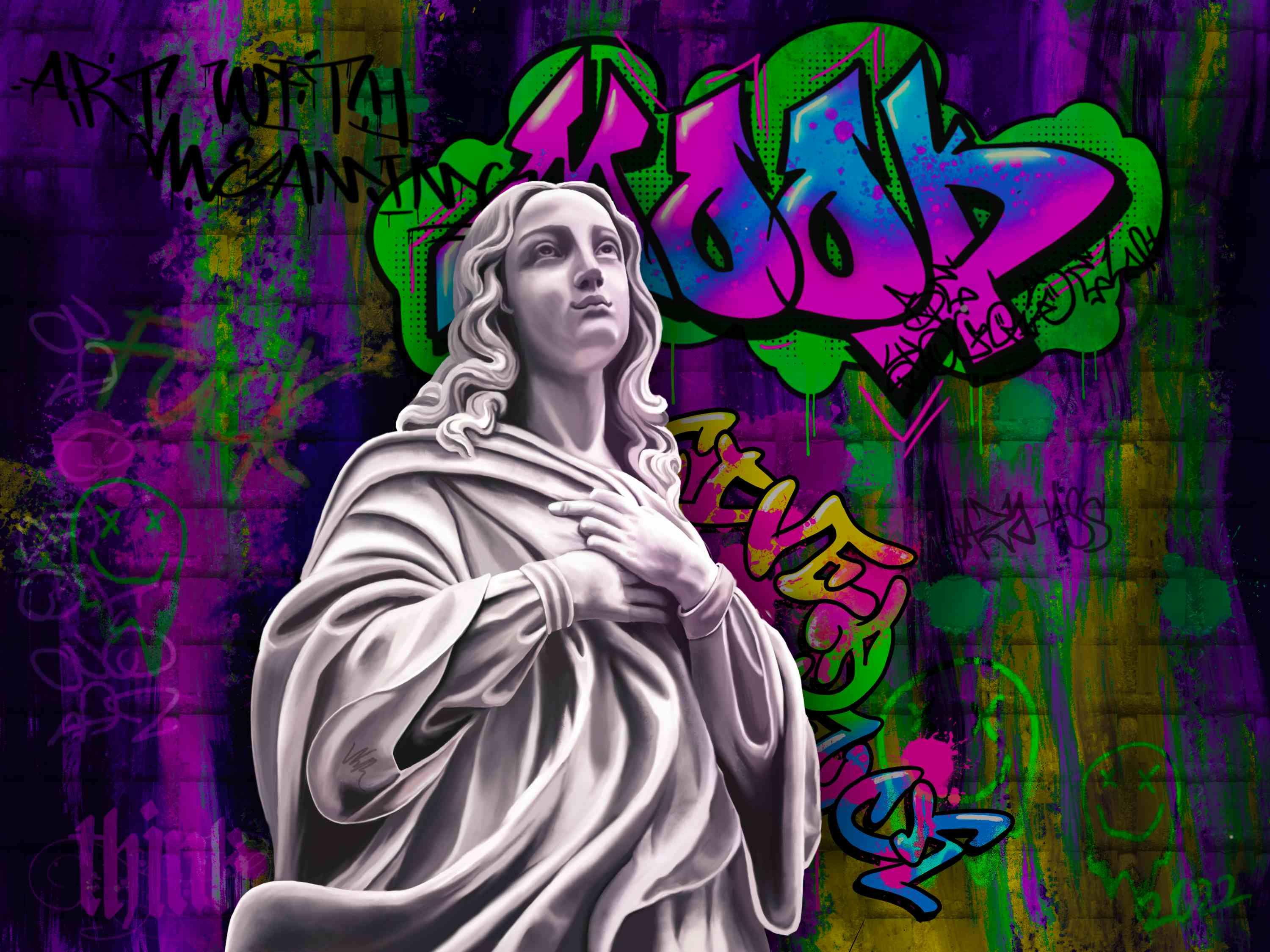 My art style is a mixture of traditional art with modern style, graffiti and calligraphy. The combination of something beautiful, sublime and something urban, street.