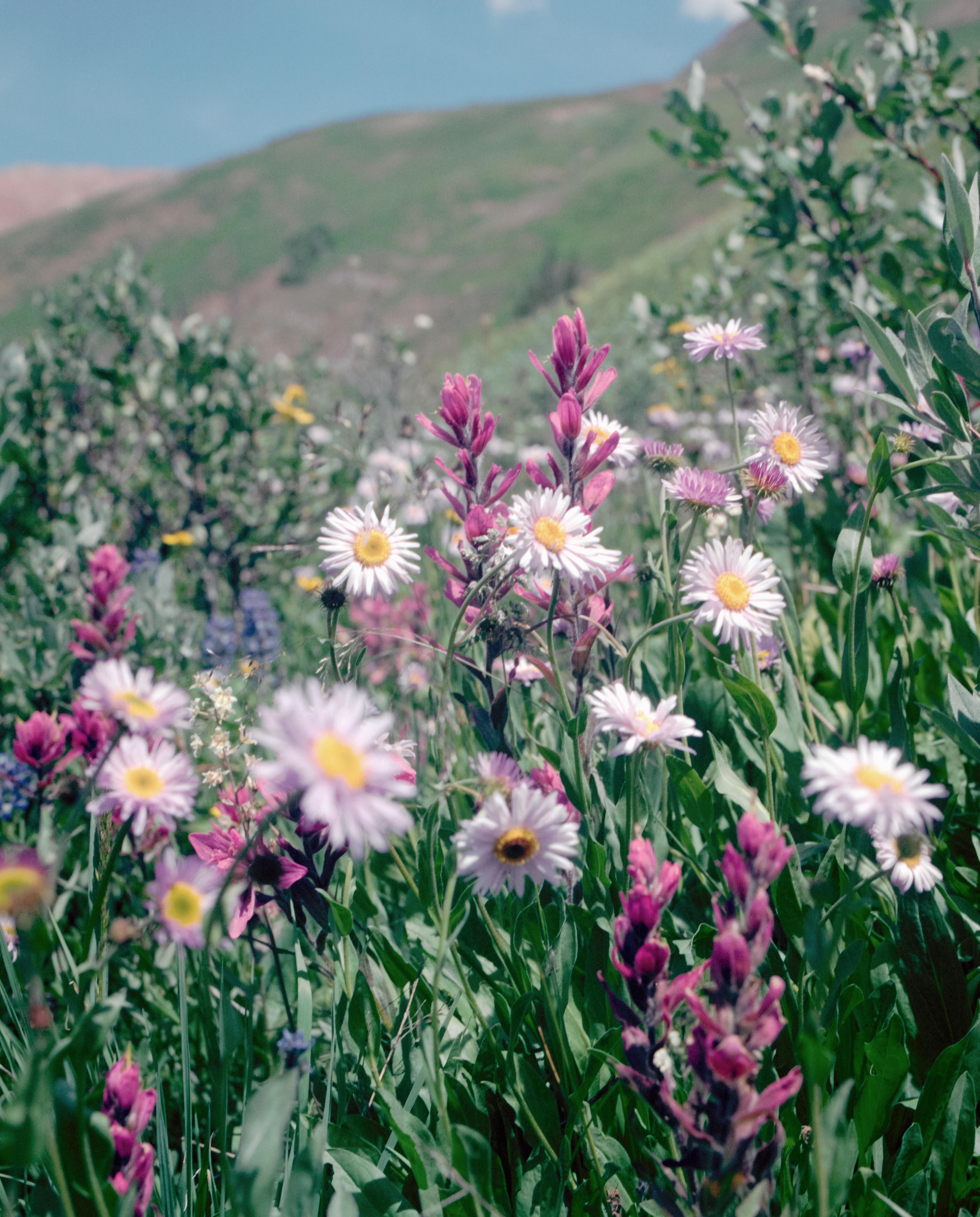 He picked an Aster from a blooming cluster tangled among the magenta Indian paint brush. It was dainty, he thought, small and elegant – bijou. He chuckled