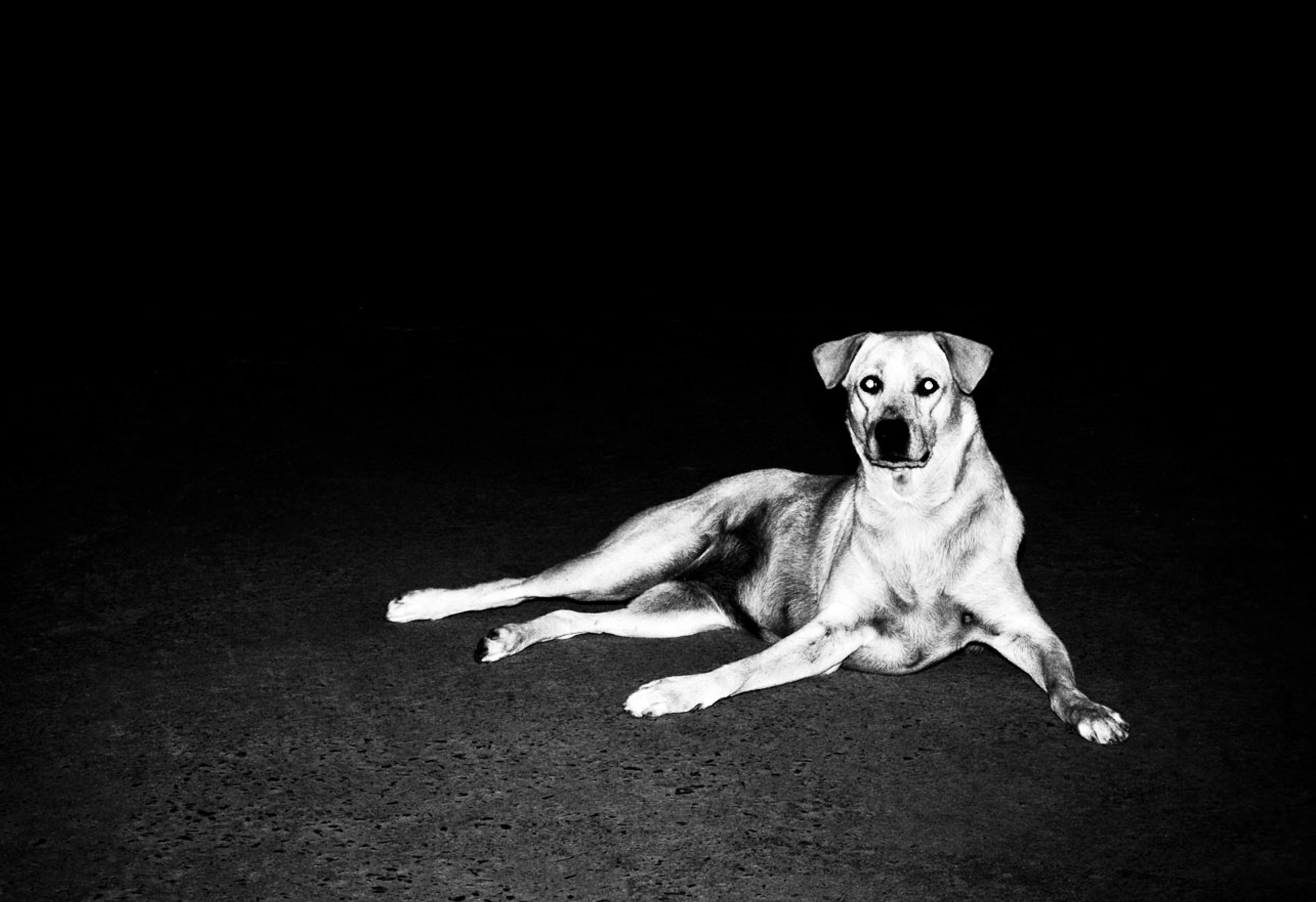 He is a half-breed dog found in middle of Bangkok street. He like to lay down on the ground with his relax post. He is quite old and fat as got feeding by