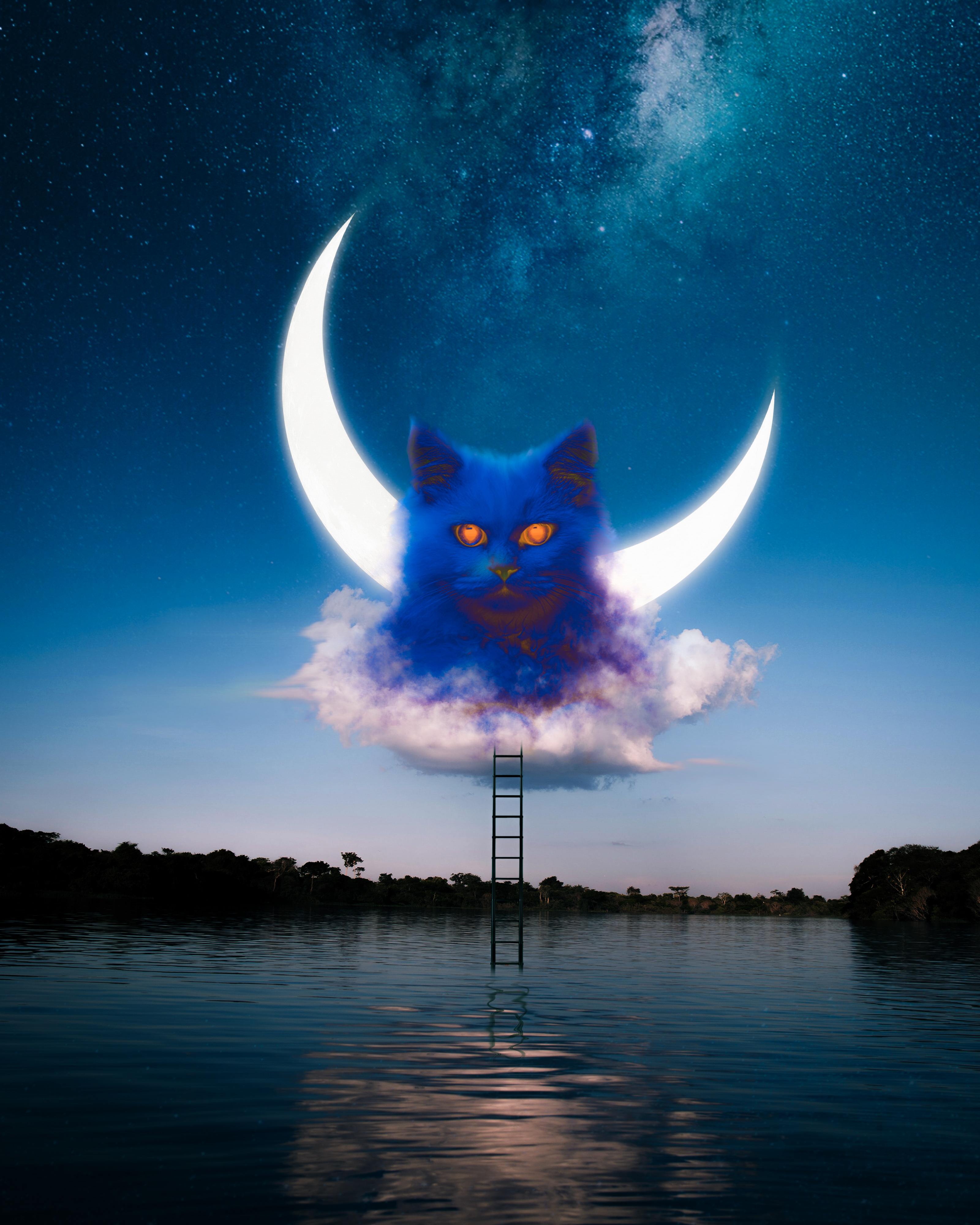 Blue Cat Moon is the watcher of the universe at night. by Geraldc 3200 x 4000 px 2021