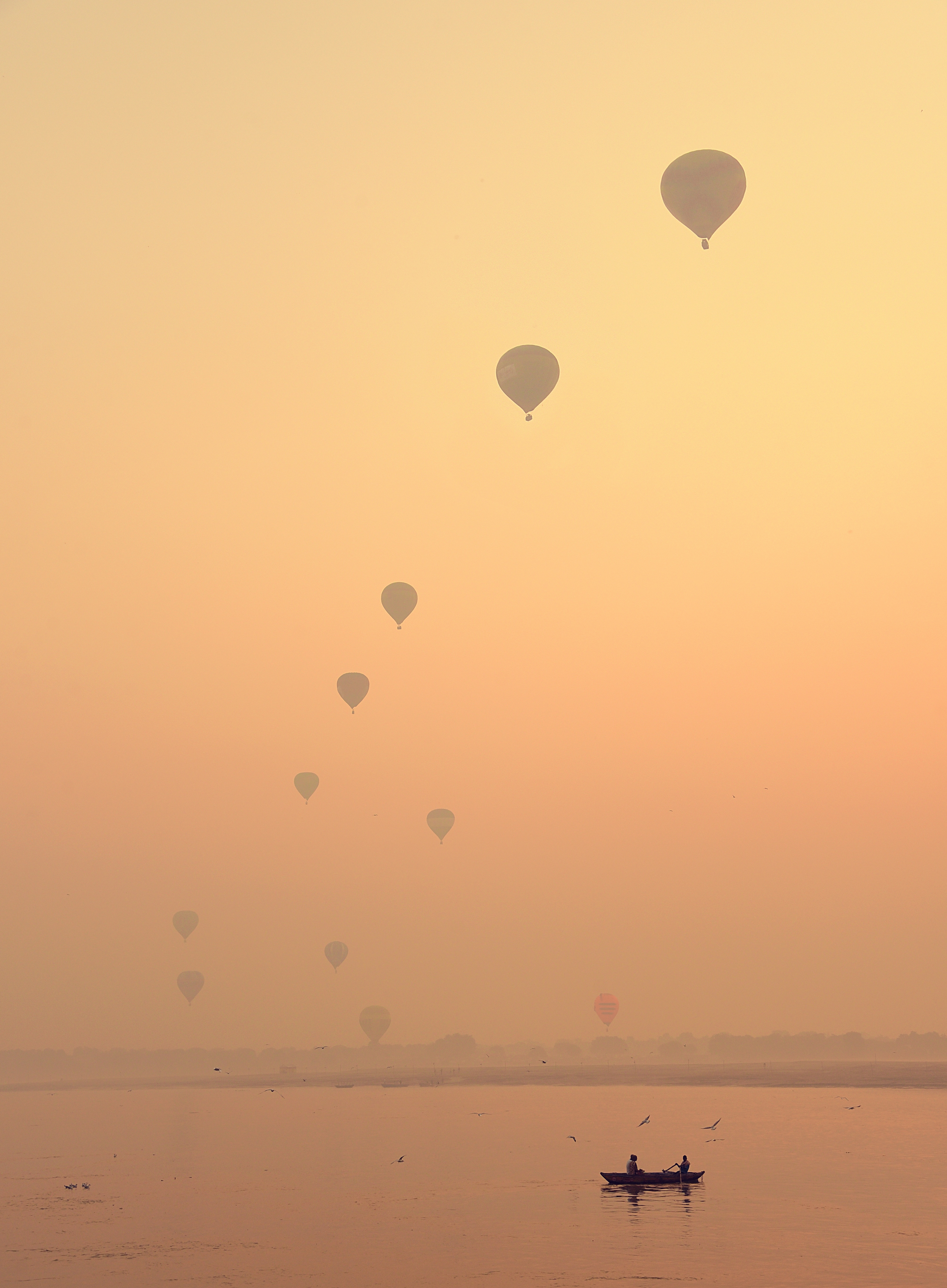 Presenting a RARE PHOTOGRAPH from the Ghats of Varanasi, India since it is quite a unique phenomenon in this part of the country to spot hot air balloons f