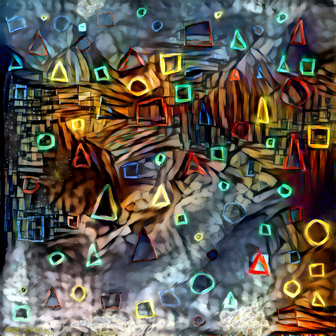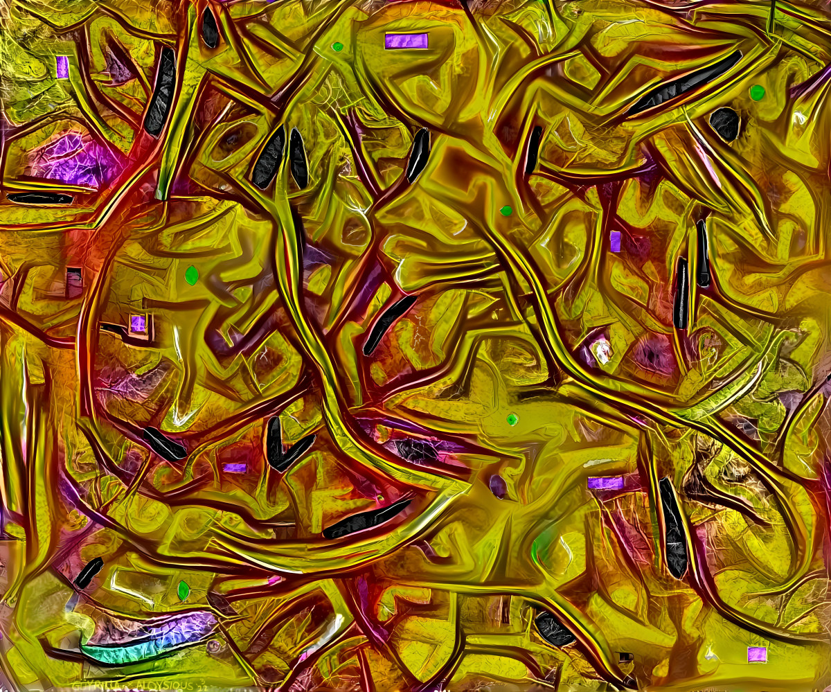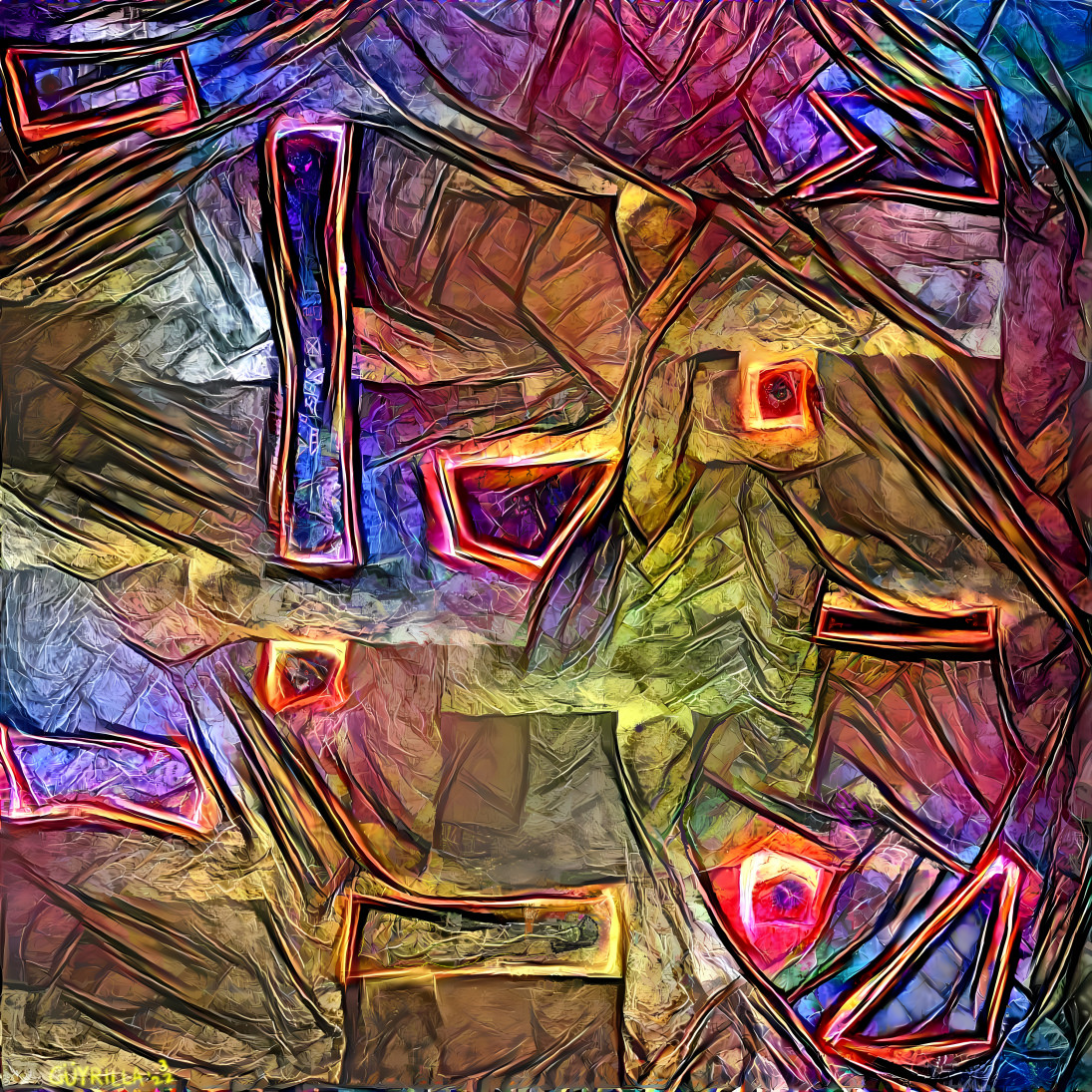 Jagged shards of chaotic rock candy. Shattered into fluid blades of the complexity of color. A massive scope of texture and shape constructed and ma