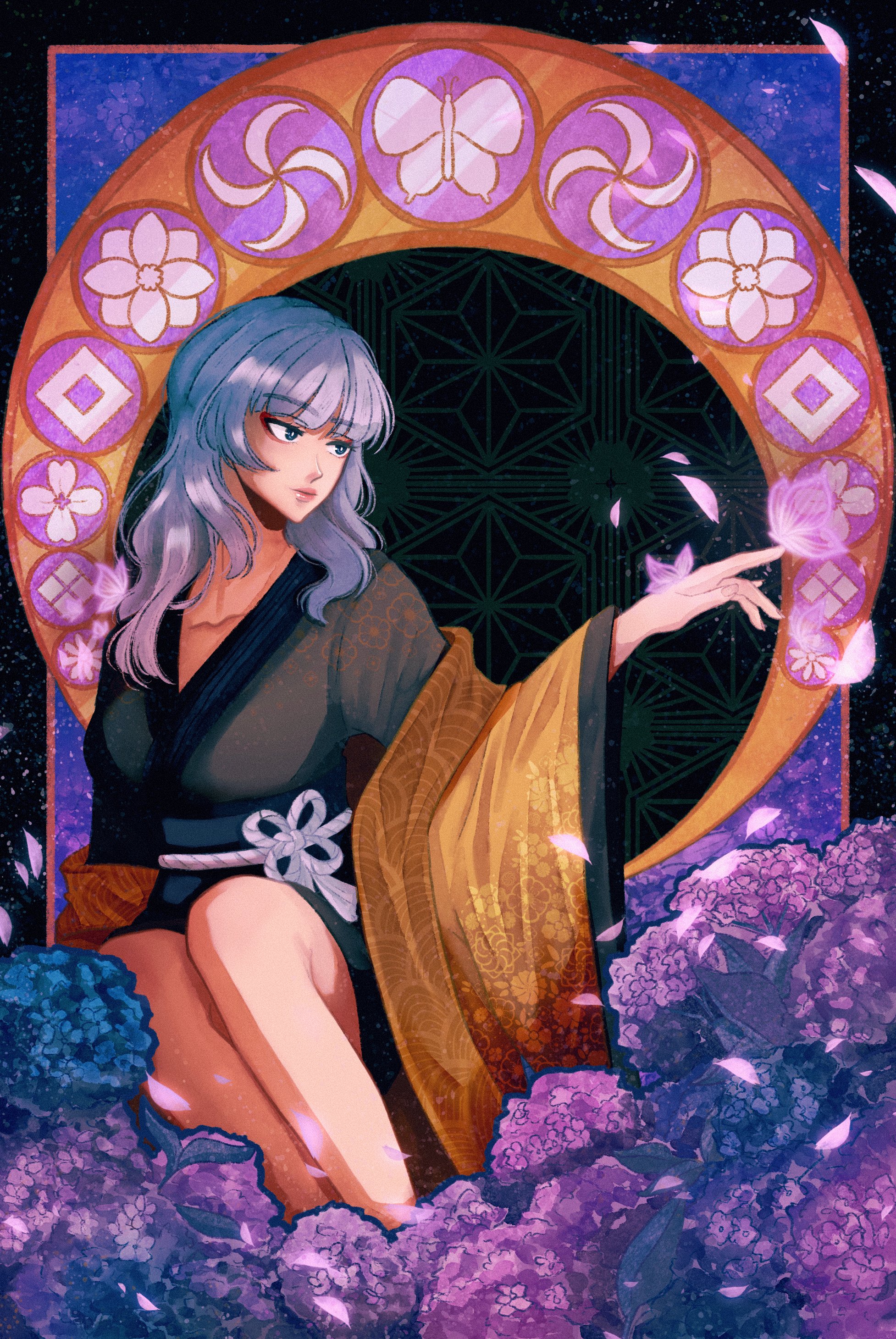 In the garden amidst hydrangeas was the Lady of Butterflies. Elegant, beautiful, and deadly, she will cast judgement upon the sinners who enter her domain.