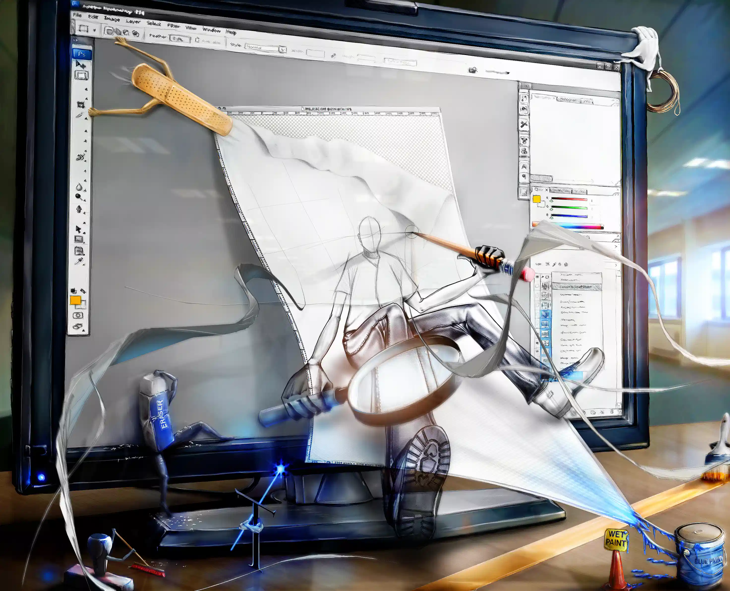 What are your creative projects doing when you leave your desk? Well I decided to setup a hidden camera to find out! 10800 X 7200 Pixel Jpg Image.