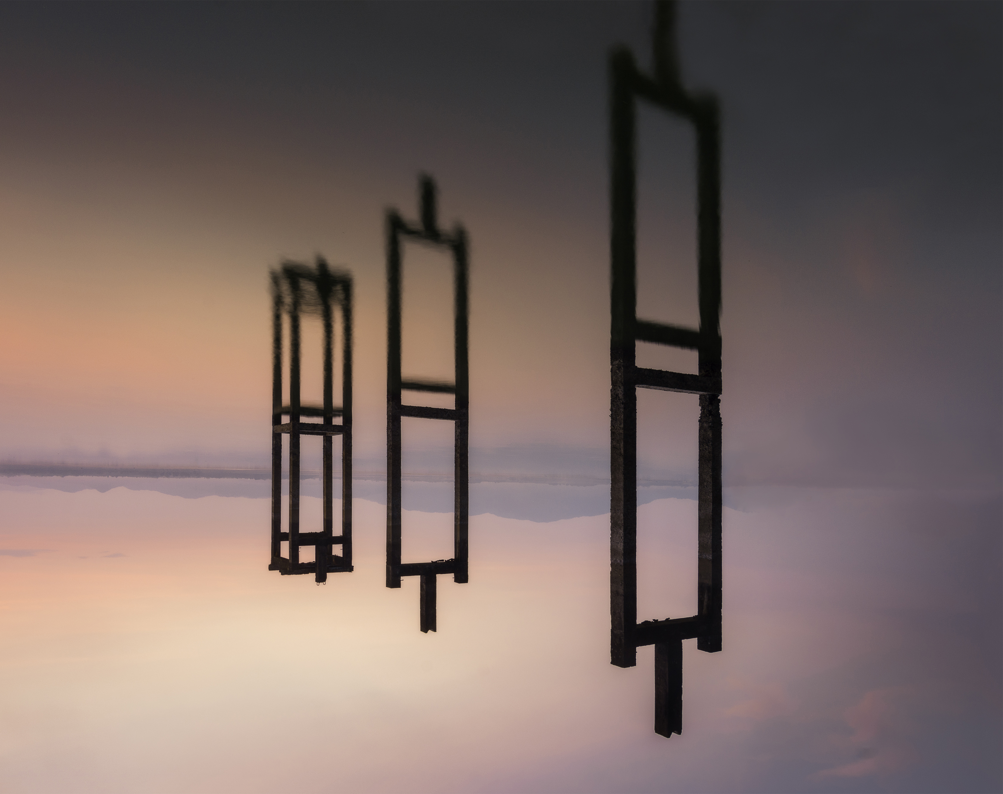 lake scenery in asia winter morning sun. The sea and the sky moved in the morning. Technique: high shutter speed+ND filter The inverted reflection from th