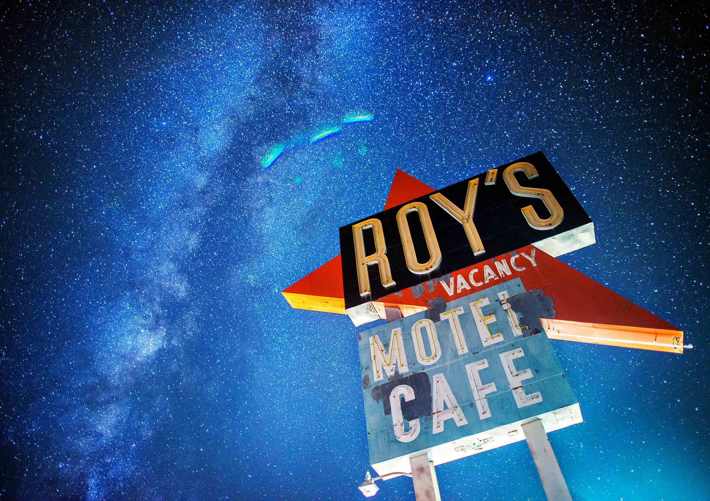 I have a recurring dream where I’m driving down a two-lane desert highway in the dark of night surrounded by stars, windows down in the warmth of summer, careening toward a distant beacon of light. The place could be a motel, gas station or cafe. It’s off the beaten path, a place of rest where time, space, and light meet. It alternates between the red rock deserts of Utah, the bajadas of the Mojave Desert, the mountains in Northern New Mexico, or the Great Basin, but the place is always the same. Old signs, run down buildings,- a spot to rest my head. The defunct Roy’s Motel in the town of Amboy on Route 66 is where reality meets slumber. I had the Mother Road to myself, a fitting conveyor of asphalt to guide me home into the churning megalopolis. Speeding west, I blasted the Gypsy Kings version of Hotel California windows down, 12-hour old coffee flowing, and generally not giving a shit about anything other than the 500 feet of road in front of me.