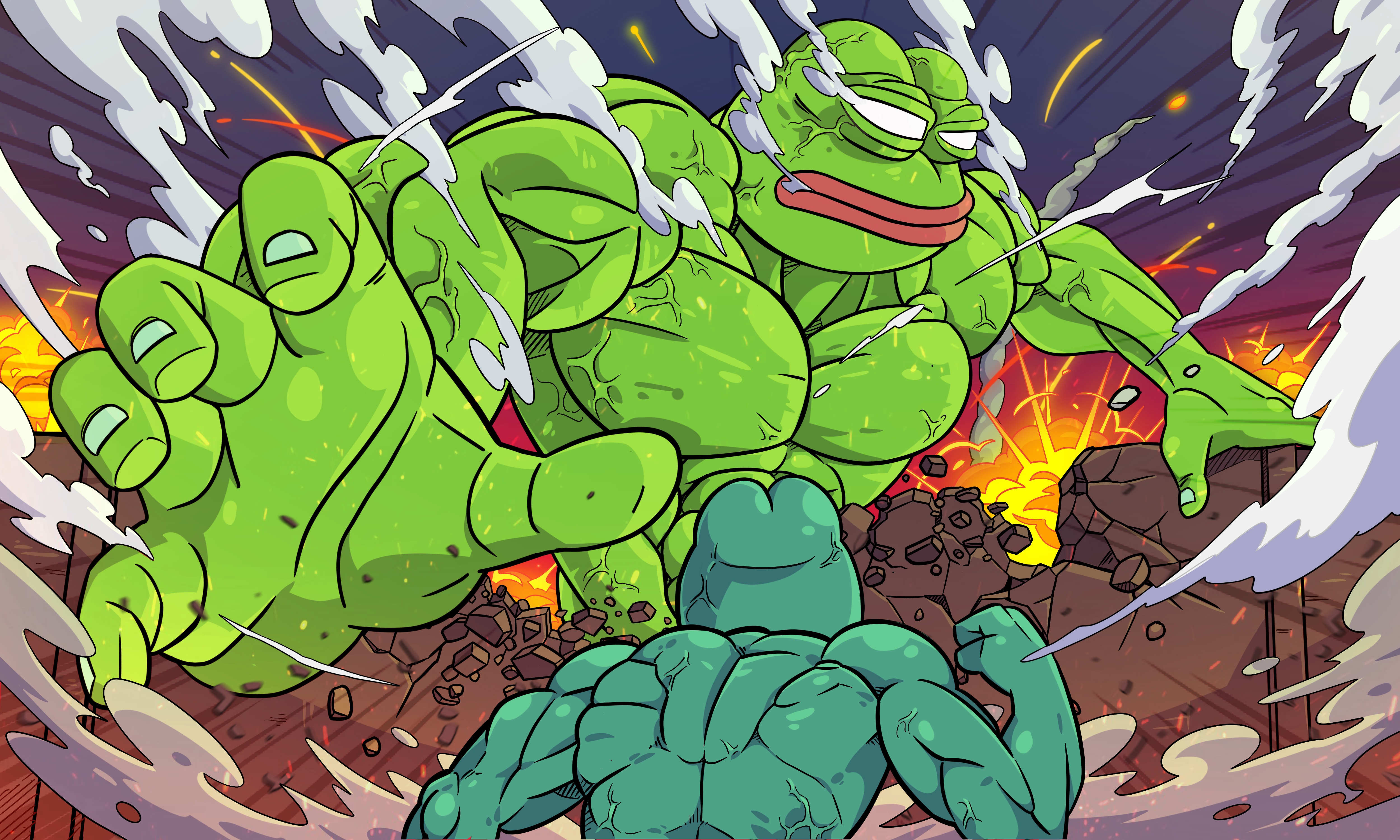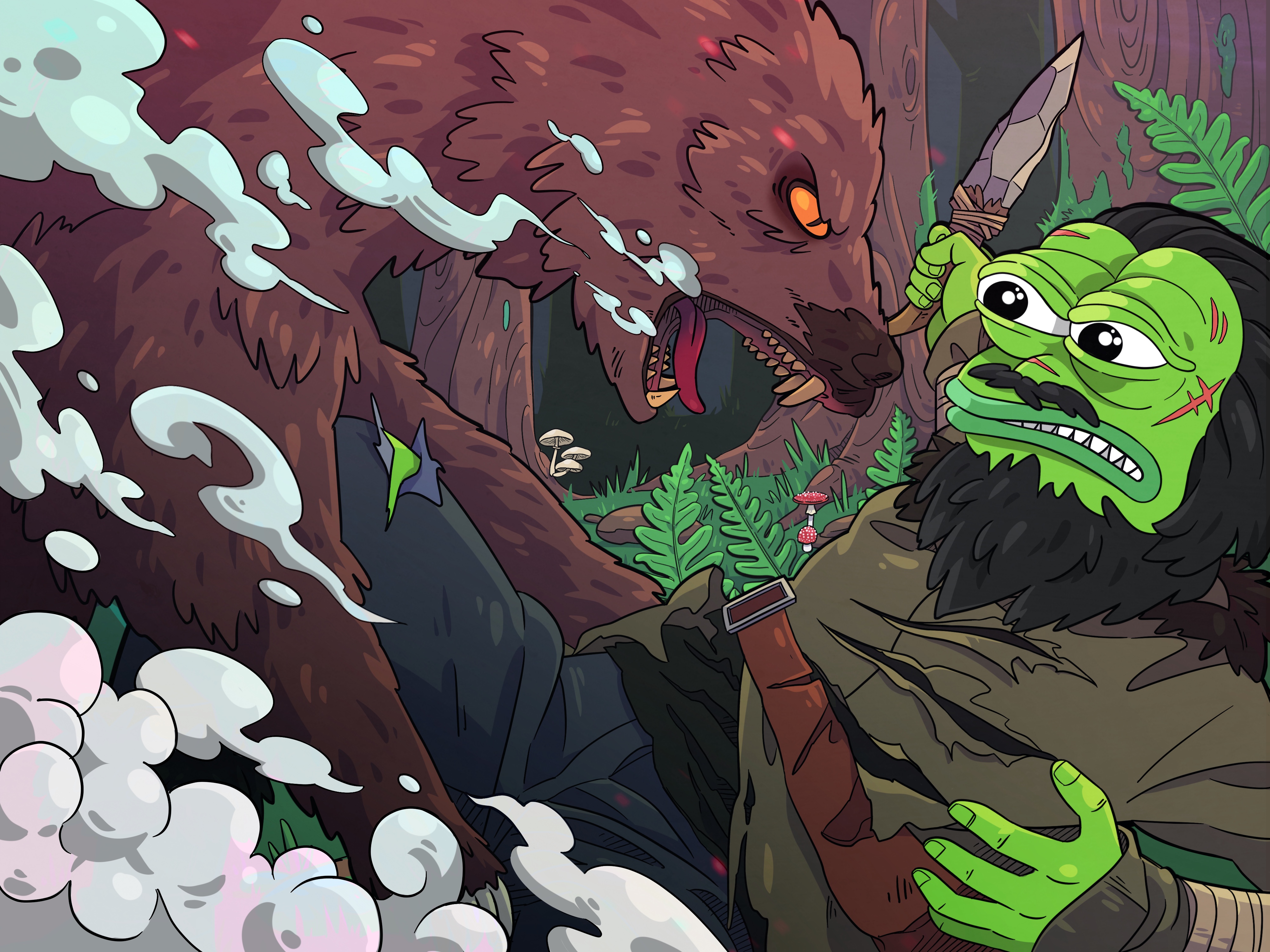 Will Pepe survive his encounter with a bear? 4000 x 3000 px Edition 1/1 by YorickYoh