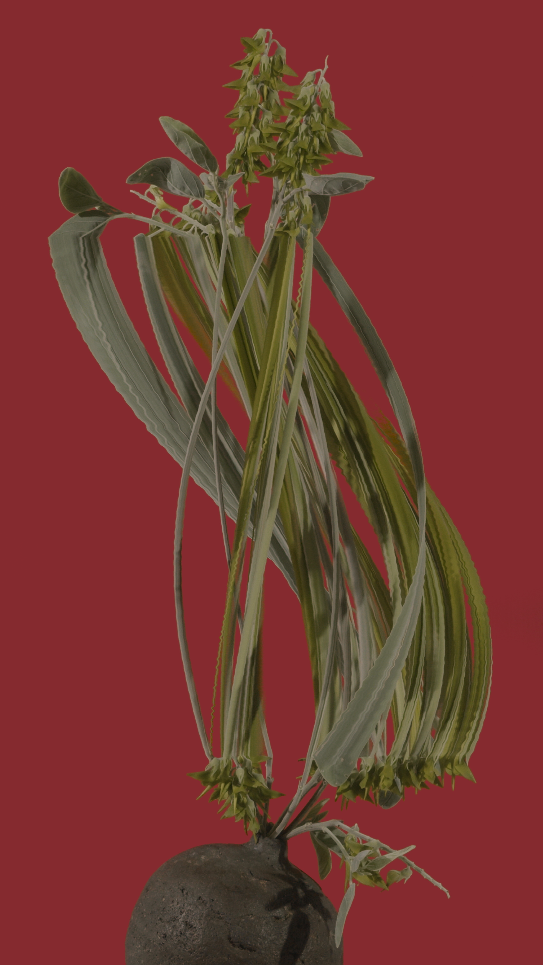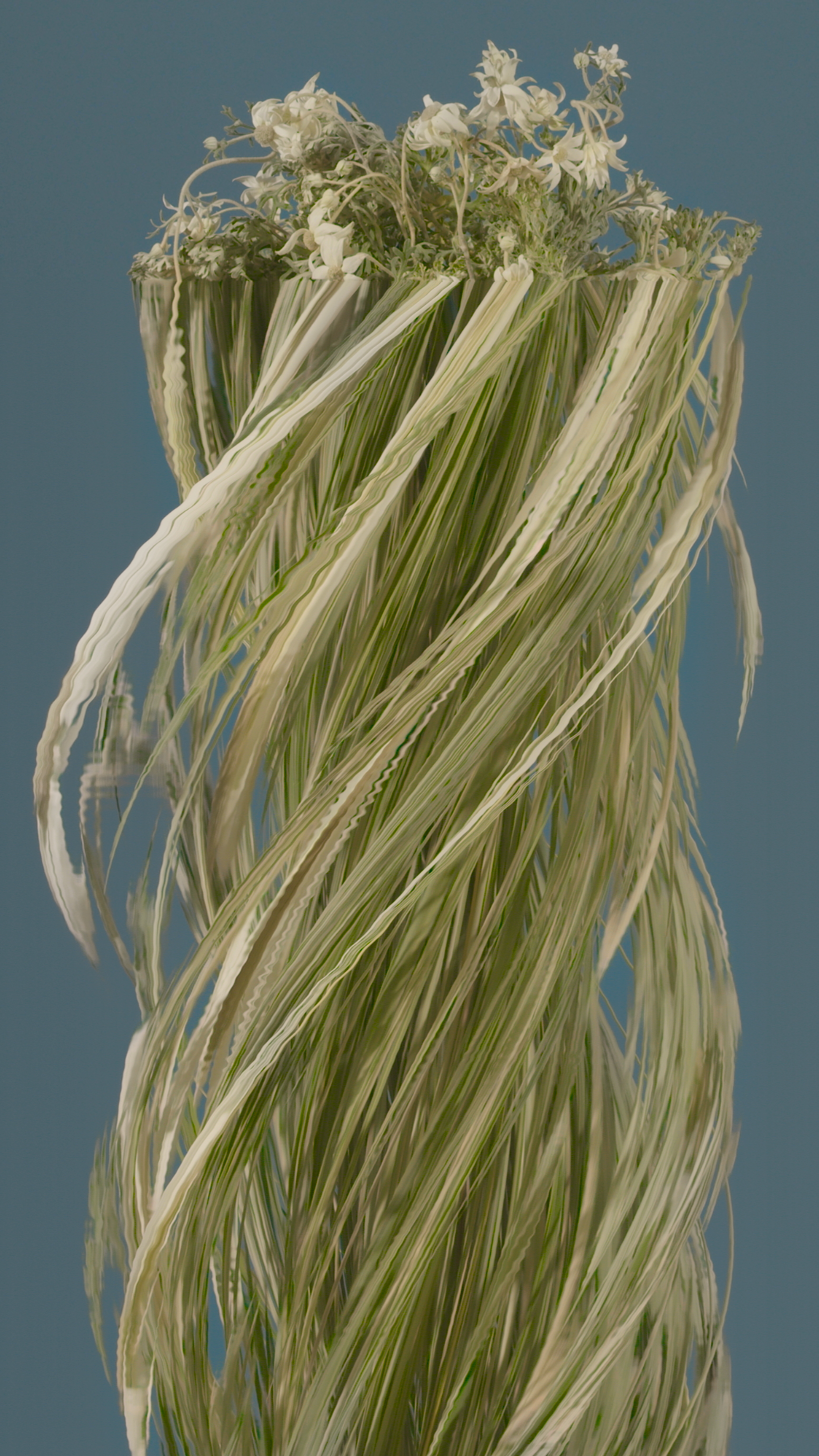 Ivory Curl (*buckinghamia celsissima*) 1/1 jpeg, 2160 x 3840 **BLOOM II** *australian native fleurs* Using slit scan and time remapping, the transformat