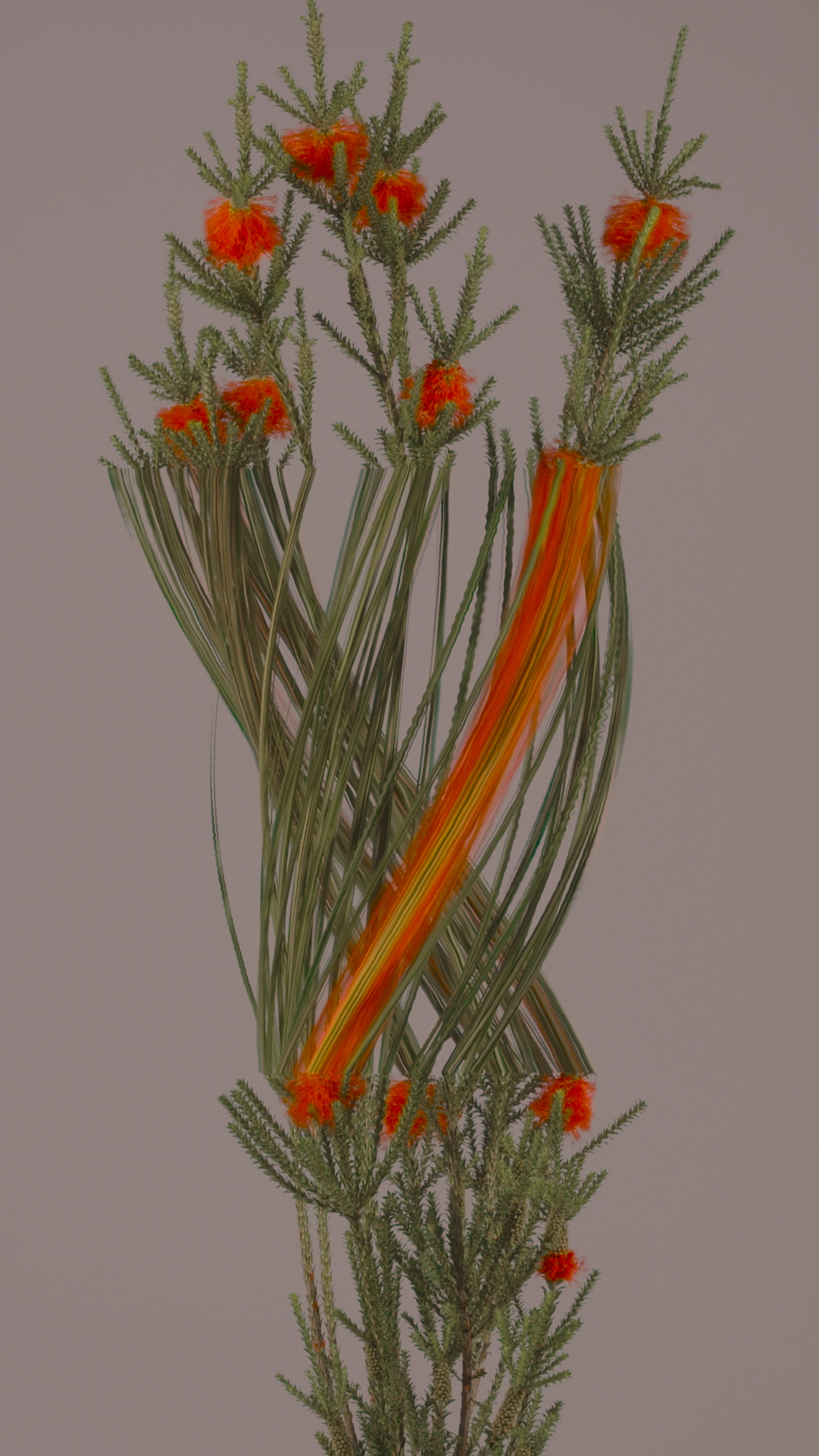 Swamp Flame (*beaufortia sparsa*) 1/1 jpeg, 2160 x 3840 **BLOOM II** *australian native fleurs* Using slit scan and time remapping, the transformative c