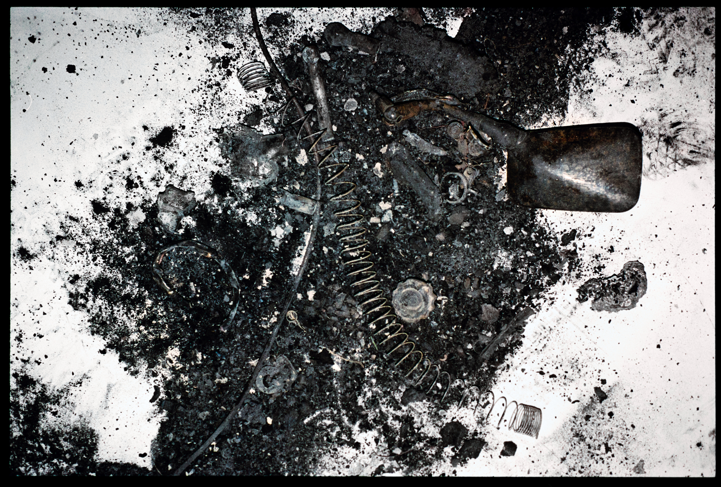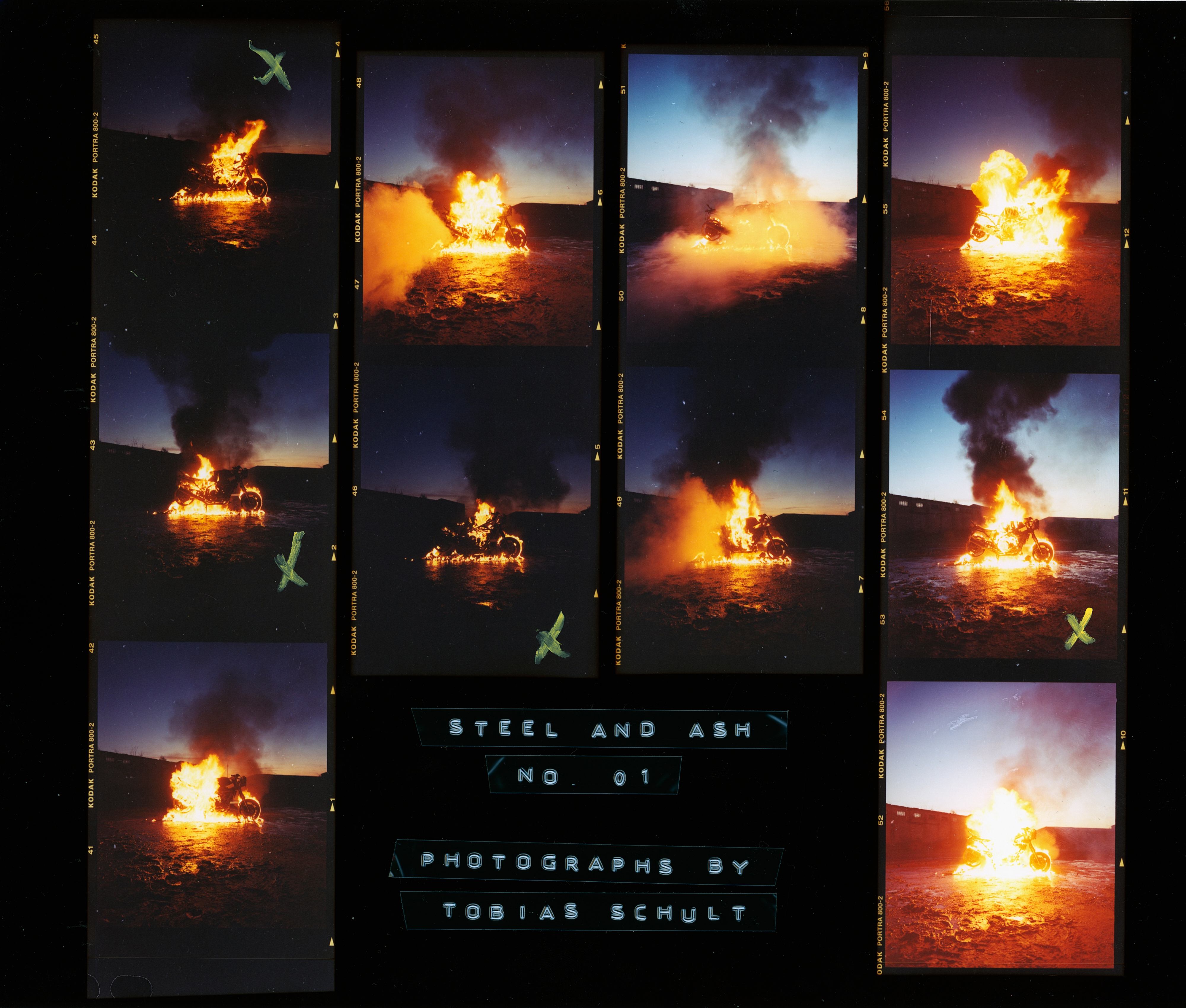 This is a scan, of one of the original darkroom-printed contact sheets of "STEEL AND ASH". Contact sheet 01, in particular, shows a later stage of the burn